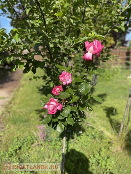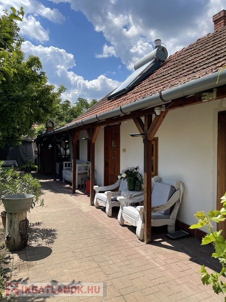 A 1080 m2-es, gondozott telken számos gyümölcsfa ontja termését, igazi kerti paradicsomot teremtve. A szabadtéri élet szerelmeseinek külön öröm lesz a 15 m2-es kinti konyha ahol egy grillsütõ is helyet kapott, az udvaron lévõ kemence és egy szalonna sütõ, mely ideális nyári sütögetésekhez és baráti összejövetelekhez. Emellett kinti angol WC és kinti zuhanyzó is rendelkezésre áll, melyhez a meleg vizet nyáron a napkollektor, télen egy villanybojler biztosítja, növelve a komfortot.