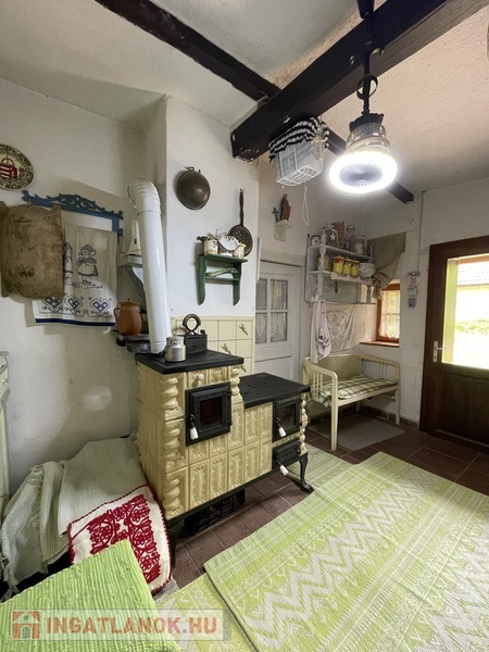 A házban 2 nagy szoba, konyha és fürdõszoba+WC található, melyek a régmúlt idõk hangulatát idézik. A fûtésrõl az egyik szobában egy hangulatos cserépkályha, a másikban egy kályha és a konyhában egy csikókályha gondoskodik, garantálva a téli esték melegét.