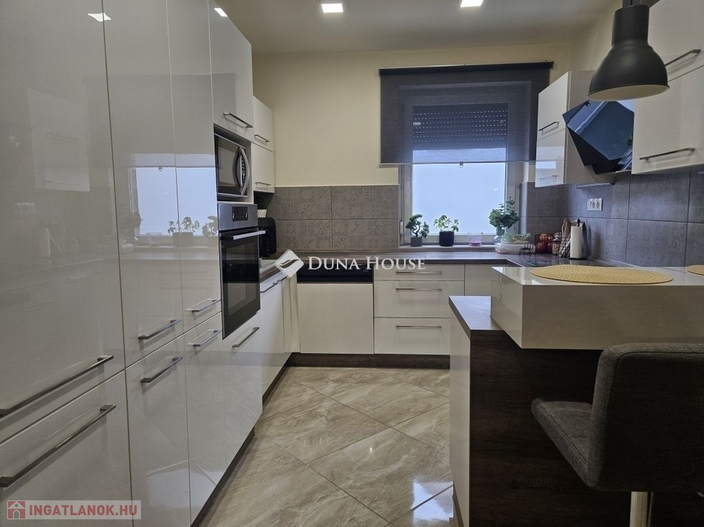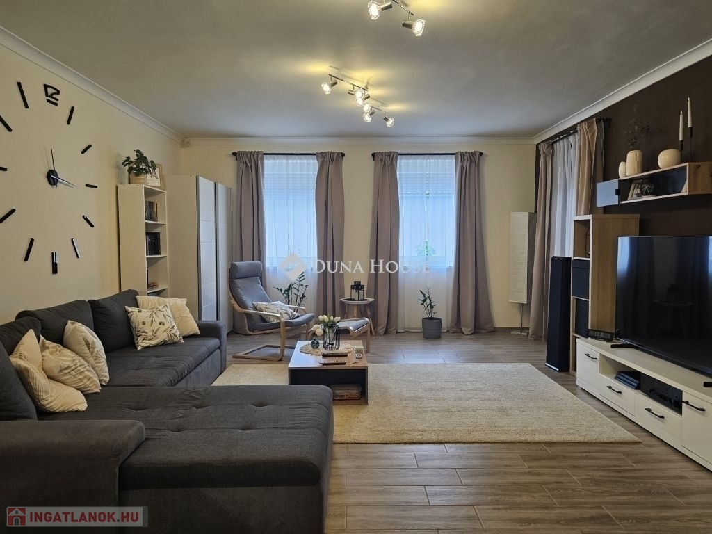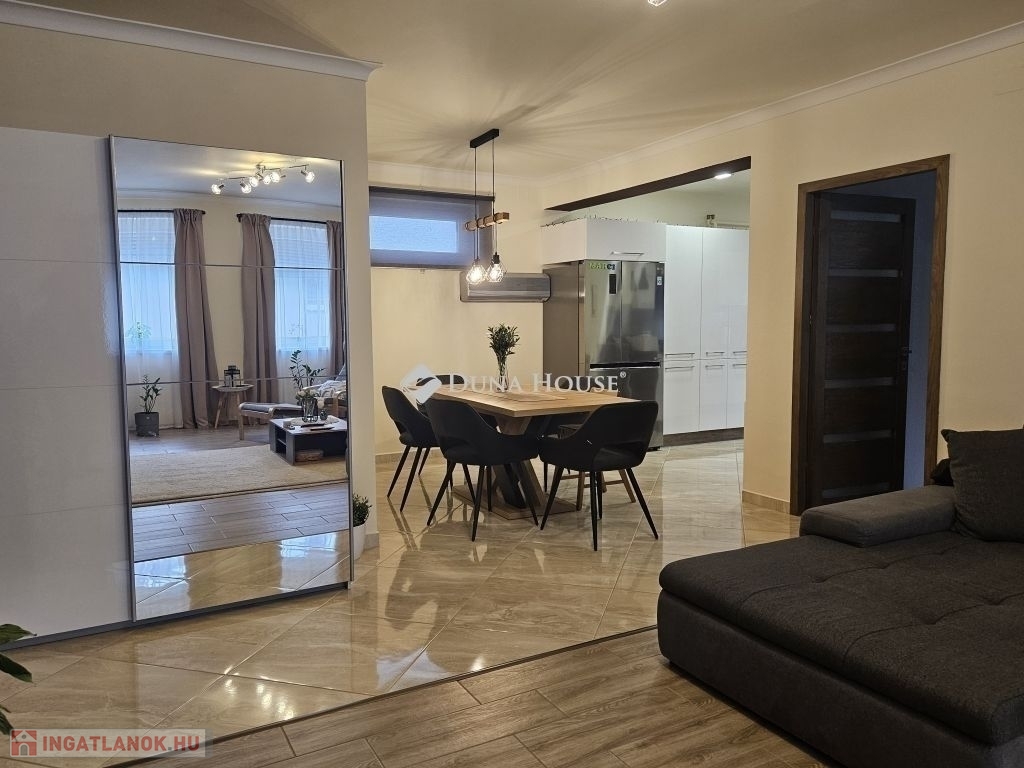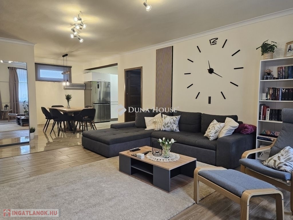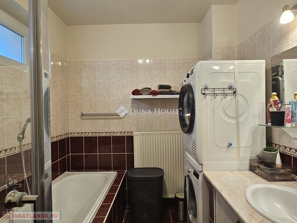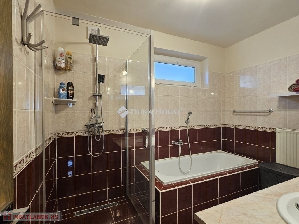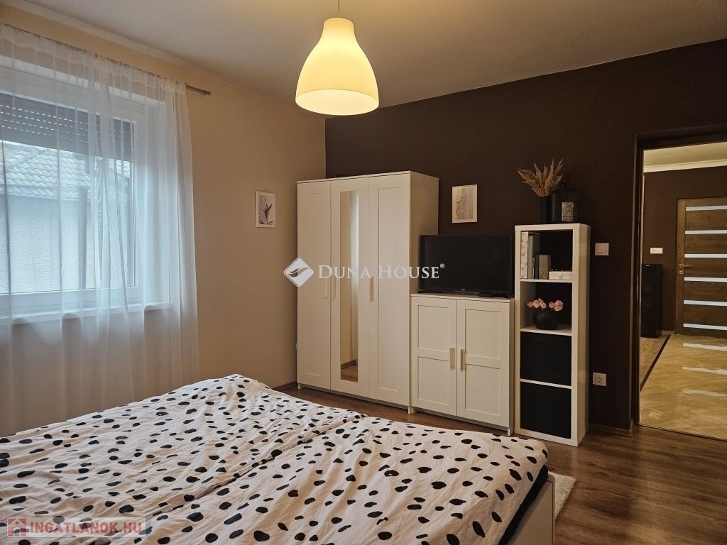 Eladó Máriagyűd egyik kedvelt, rendezett utcájában ez a gondosan karbantartott, 1996-ban épült családi ház, amelynek jelenlegi tulajdonosai az építéstől kezdve ugyanazok, így az ingatlan teljes előélete ismert. A ház Porotherm 38-as téglából épült, teljes körű homlokzati, lábazati és födémszigeteléssel rendelkezik. A beton födém lehetőséget biztosít a tetőtér beépítésére, így igény esetén a lakótér tovább bővíthető. Az ingatlan energiatakarékos megoldásokkal felszerelt: egy 5 kW-os napelemes rendszer működik rajta, amely még 8 évig szaldó elszámolásban marad, és akár 7,5 kW-ig bővíthető. A rendszer jelenleg fedezi a teljes villamosenergia-felhasználást. A fűtésről gázkazán és vegyes tüzelésű kazán gondoskodik, padlófűtéssel kiegészítve. A kellemes hőmérsékletet egész évben két inverteres klíma és egy hűtő-fűtő klíma biztosítja. A fűtési rendszer igény szerint hőszivattyúval is tovább fejleszthető. A 33 m²-es melléképületben egy 23 m²-es, szerelőaknás garázs, valamint egy 10 m²-es tároló és kazánház kapott helyet. A melléképület mögött betonozott udvarrész található, amely alkalmas medence kialakítására is. Az ingatlan korszerű, távfelügyeletes riasztórendszerrel felszerelt, amely a nyílászárókra és a garázsra is kiterjed, így a biztonság is megoldott. A ház ideális választás mindazok számára, akik egy jól karbantartott, energiatakarékos, bővíthető otthont keresnek nyugodt környezetben. Megtekintés és további információ miatt várom hívását.