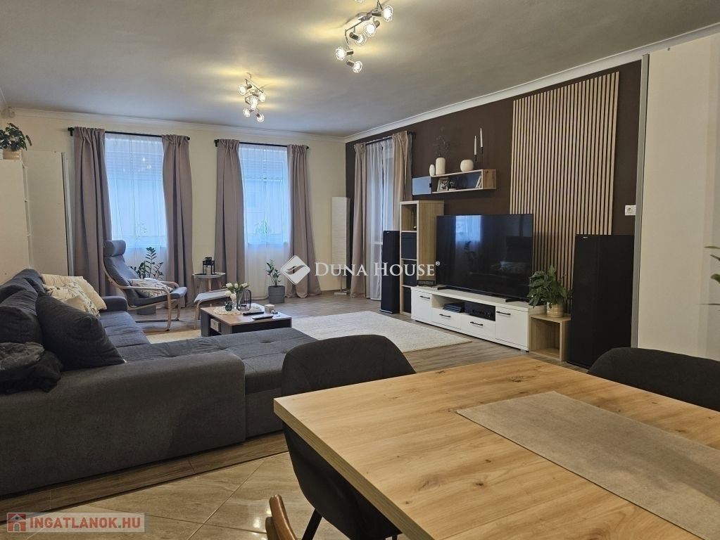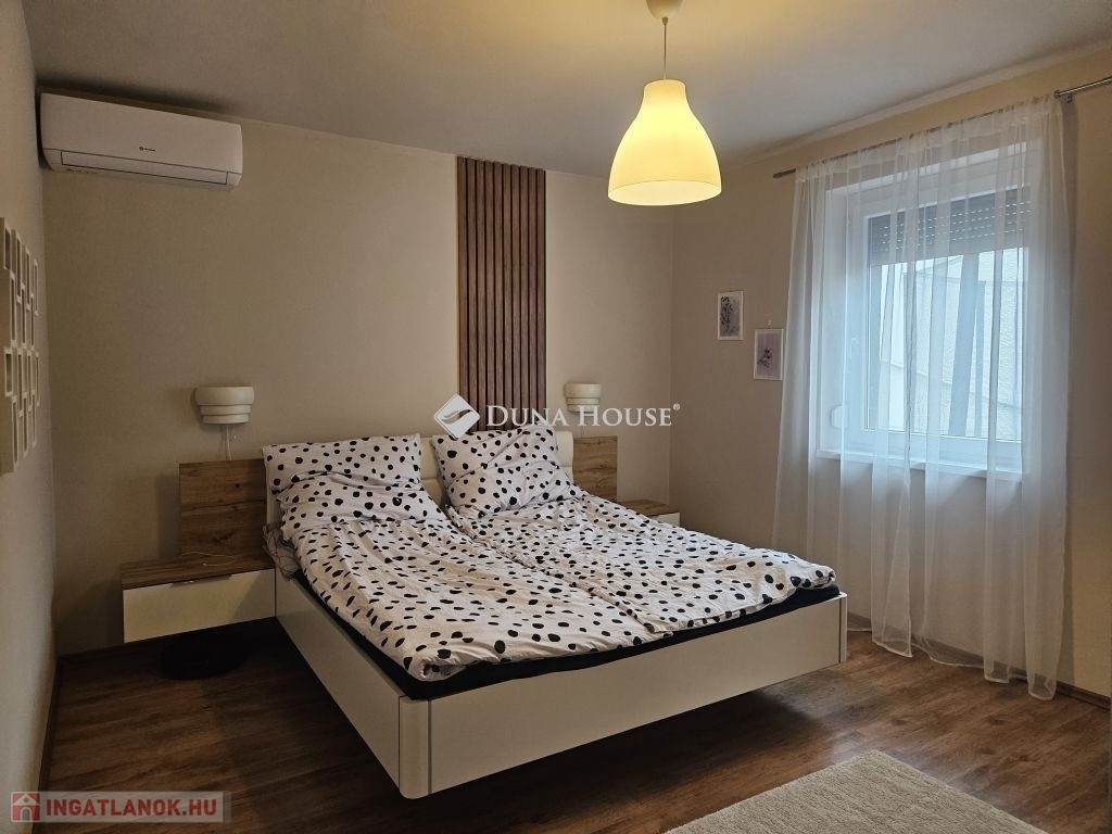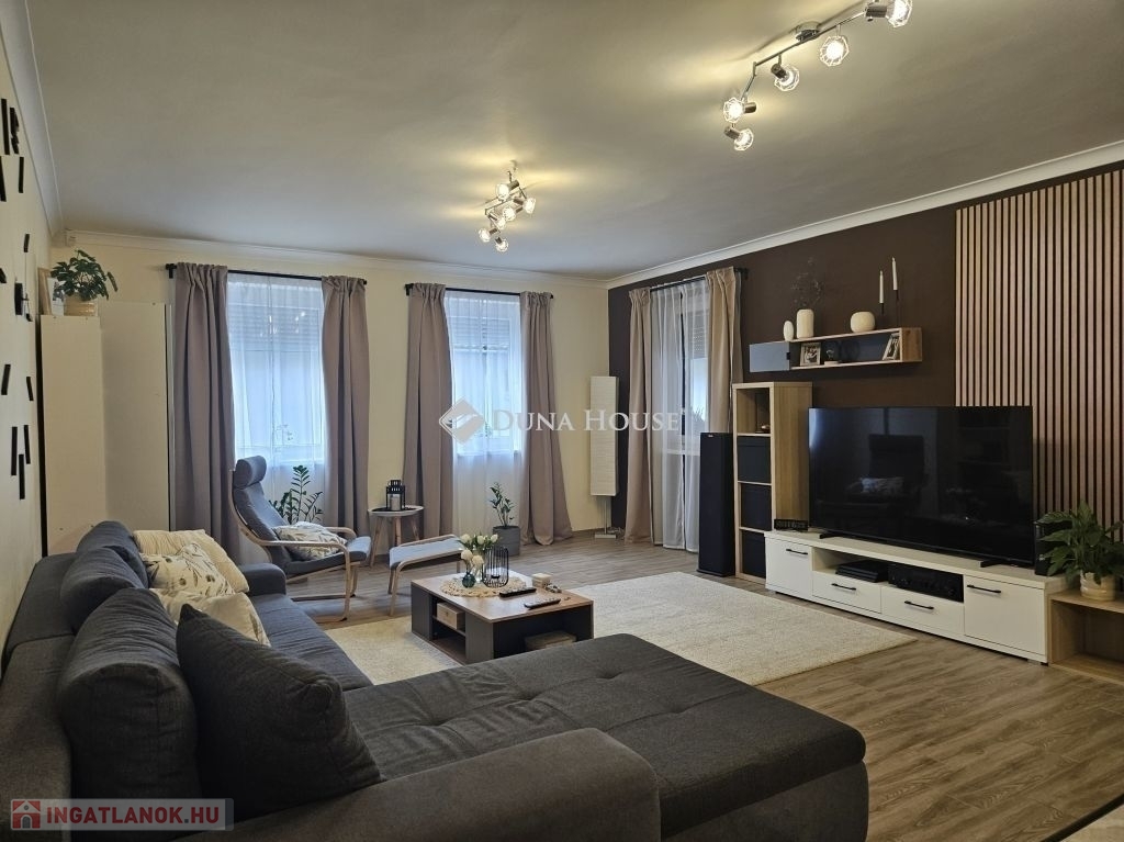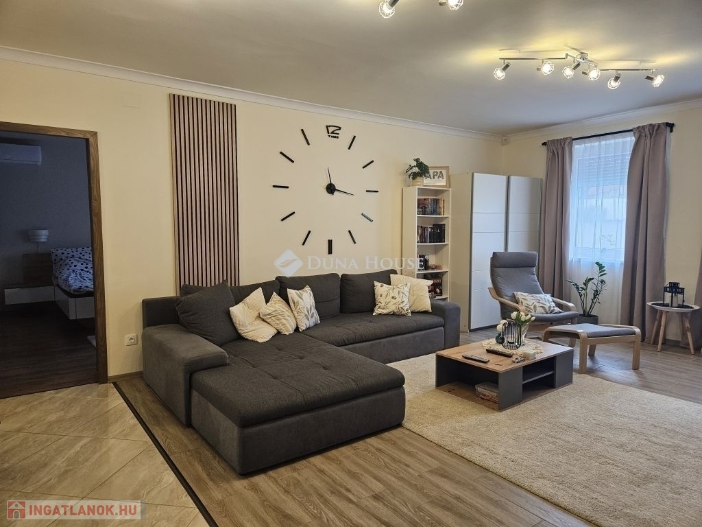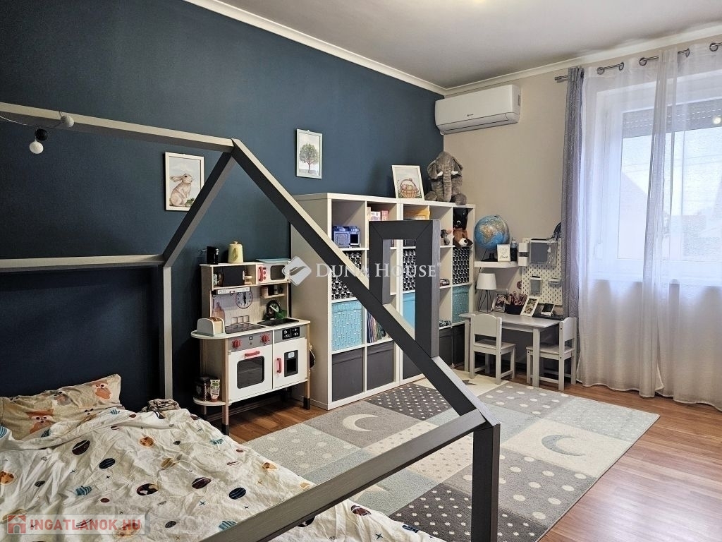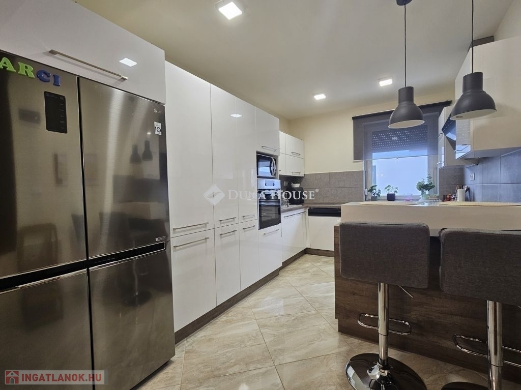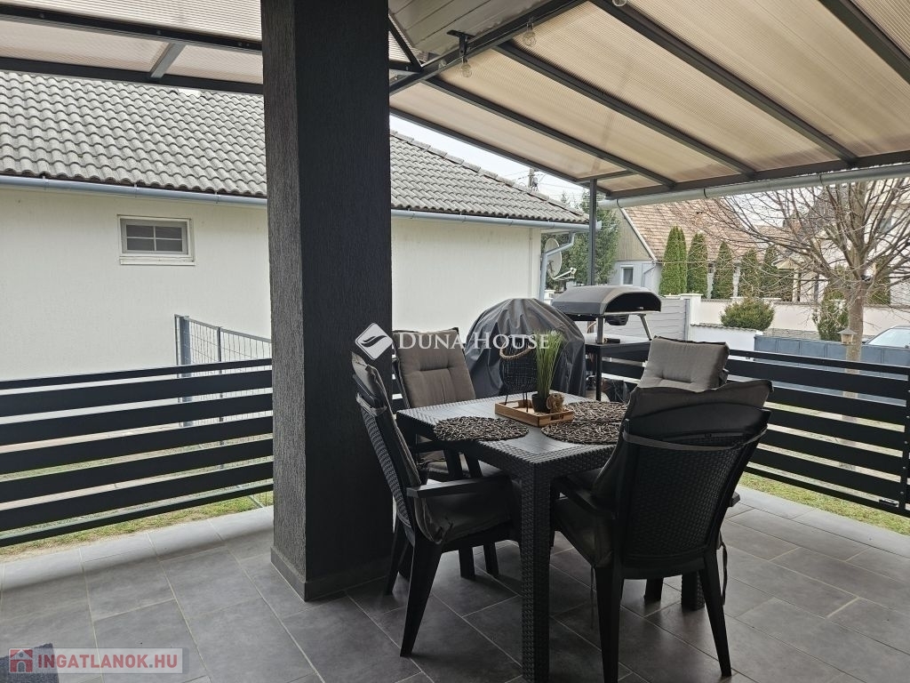 Eladó Máriagyűd egyik kedvelt, rendezett utcájában ez a gondosan karbantartott, 1996-ban épült családi ház, amelynek jelenlegi tulajdonosai az építéstől kezdve ugyanazok, így az ingatlan teljes előélete ismert. A ház Porotherm 38-as téglából épült, teljes körű homlokzati, lábazati és födémszigeteléssel rendelkezik. A beton födém lehetőséget biztosít a tetőtér beépítésére, így igény esetén a lakótér tovább bővíthető. Az ingatlan energiatakarékos megoldásokkal felszerelt: egy 5 kW-os napelemes rendszer működik rajta, amely még 8 évig szaldó elszámolásban marad, és akár 7,5 kW-ig bővíthető. A rendszer jelenleg fedezi a teljes villamosenergia-felhasználást. A fűtésről gázkazán és vegyes tüzelésű kazán gondoskodik, padlófűtéssel kiegészítve. A kellemes hőmérsékletet egész évben két inverteres klíma és egy hűtő-fűtő klíma biztosítja. A fűtési rendszer igény szerint hőszivattyúval is tovább fejleszthető. A 33 m²-es melléképületben egy 23 m²-es, szerelőaknás garázs, valamint egy 10 m²-es tároló és kazánház kapott helyet. A melléképület mögött betonozott udvarrész található, amely alkalmas medence kialakítására is. Az ingatlan korszerű, távfelügyeletes riasztórendszerrel felszerelt, amely a nyílászárókra és a garázsra is kiterjed, így a biztonság is megoldott. A ház ideális választás mindazok számára, akik egy jól karbantartott, energiatakarékos, bővíthető otthont keresnek nyugodt környezetben. Megtekintés és további információ miatt várom hívását.