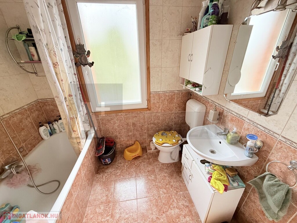 -első szint : nappali szoba , fürdőszoba wc-vel és még egy szoba amely15m2-es, terasz kapcsolatos / még befejezésre vár /és a kádas fürdőszoba wc-vel