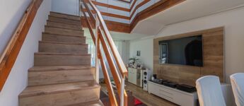 A földszinten található a tágas nappali, modern konyha és egy tusolós fürdőszoba. Az emeleten három kényelmes hálószoba és egy kádas fürdőszoba kapott helyet, amelyek biztosítják a mindennapi kényelmet.
