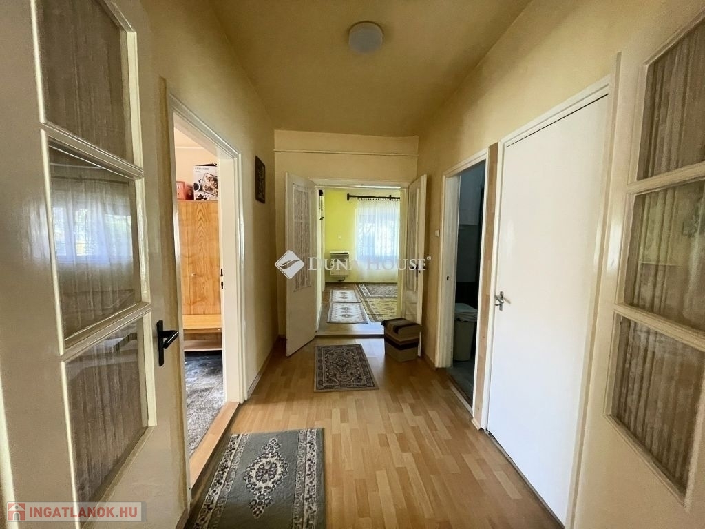 A fedett teraszról nyílik az előszoba, ahonnan elérhető a konyha és egy szoba, amely akár étkezőként is használható. A közlekedőből nyílik a kamra, a fürdőszoba, a WC és egy másik hálószoba. Az utcafronti tágas nagy szobából egy kisebb helyiség nyílik, amely kiváló lehet dolgozószobának, gardróbnak vagy gyerekszobának.