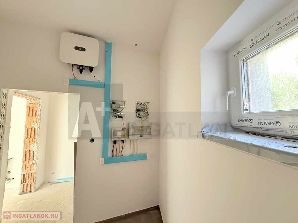 Jelenleg emelt szerkezetkész : külső vakolat , hőszigetelés , műanyag hőszigetelt ablakok , ajtók , napelem 4kw, fűtésrendszer, fan-coil , hőszivattyú , teljes kiépített villamos hálózat-szerelvényekkel , kiépített szellőzőrendszer , megépített kerítés ....