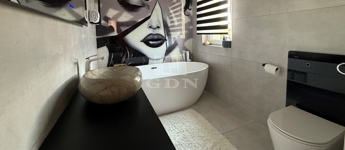 A ház téglaépítésű, szigetelt, tágas, világos, körbe napozott, minőségi anyagokból készült. A burkolatokat tekintve a szobákban magas minőségű laminált padló, a nappaliban a közlekedőben, valamint a konyhában és a vizes helyiségekben jó minőségű járólap található. A nyílászárók 3 rétegű műanyagból készültek, hőszigetelt üvegezéssel, rajtuk redőny és szúnyogháló található. A házban klíma kiépítésre került. A 20m2-es terasz, kényelmes pihenést biztosít. Az utcai kapu elektromosan nyitható. A telek örökzöldekkel, dísznövényekkel parkosított, pihenő terasz, gyermekjátszótér, és egy 27m2-es szauna/konditerem kiépített zuhanyzóval, gépészettel, valamint egy jakuzzi található benne.