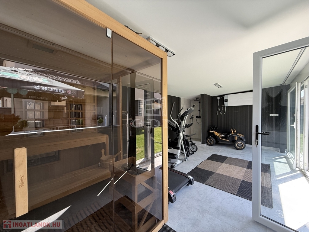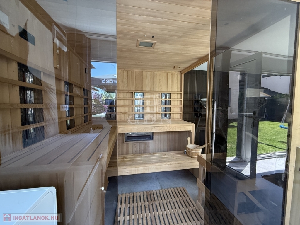 Energiahatékony ingatlan, saját 480m2 telekterület, kerti szaunaház, jakuzzi.