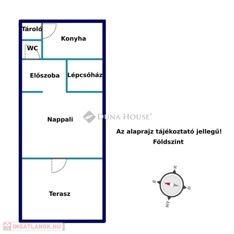 - földszinten: nappali, konyha, étkező, wc, terasz és kertkapcsolat