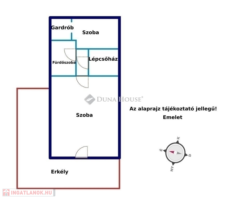 - emeleten: 2 hálószoba, fürdőszoba, erkély