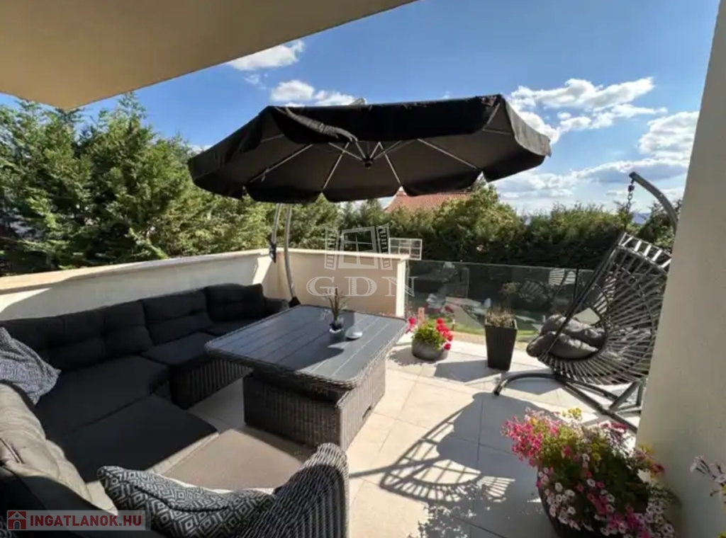 Szentendre Pismány-ban, nyugodt, kertvárosi, zöld környezetben új tulajdonosát várja a fotókon látható, modern, elegáns, panorámás, minden tekintetben prémium színvonalú, teljesen újszerű családi ház.