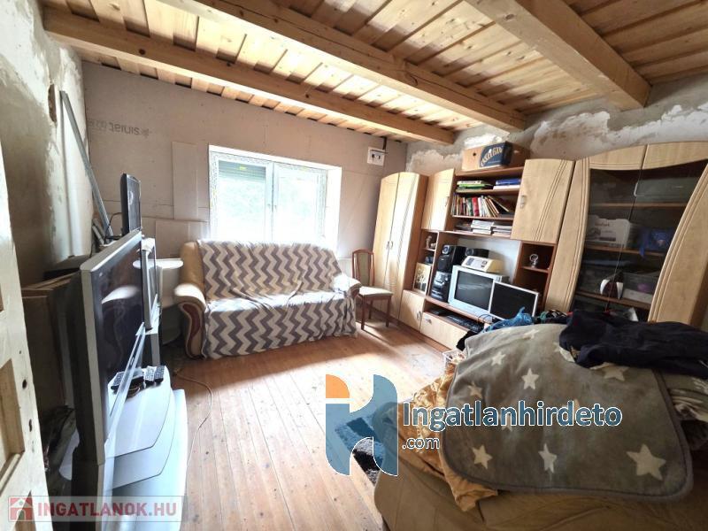A 37 m2 -es lakóházban található 1 szoba, konyha, kamra, fürdőszoba-WC (előkészületben).