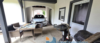 A két házrészt egy fedett autóbeálló köti össze.