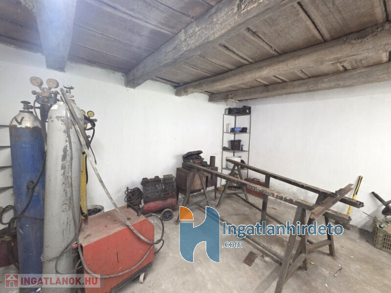 Az épülethez kapcsolódva található még egy fedett tároló 15 m2 és egy műhely 13 m2.