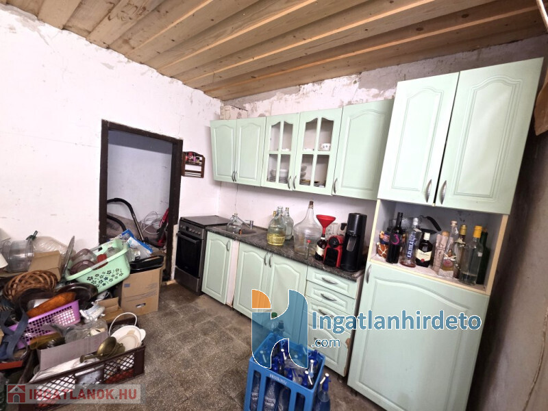 A 37 m2 -es lakóházban található 1 szoba, konyha, kamra, fürdőszoba-WC (előkészületben).