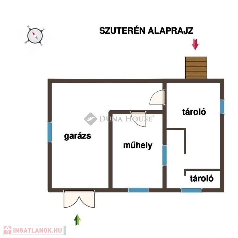 - szuterén szinten 1 állásos garázs elektromos garázskapuval, további tárolóhelyiségek, mosókonyha,
