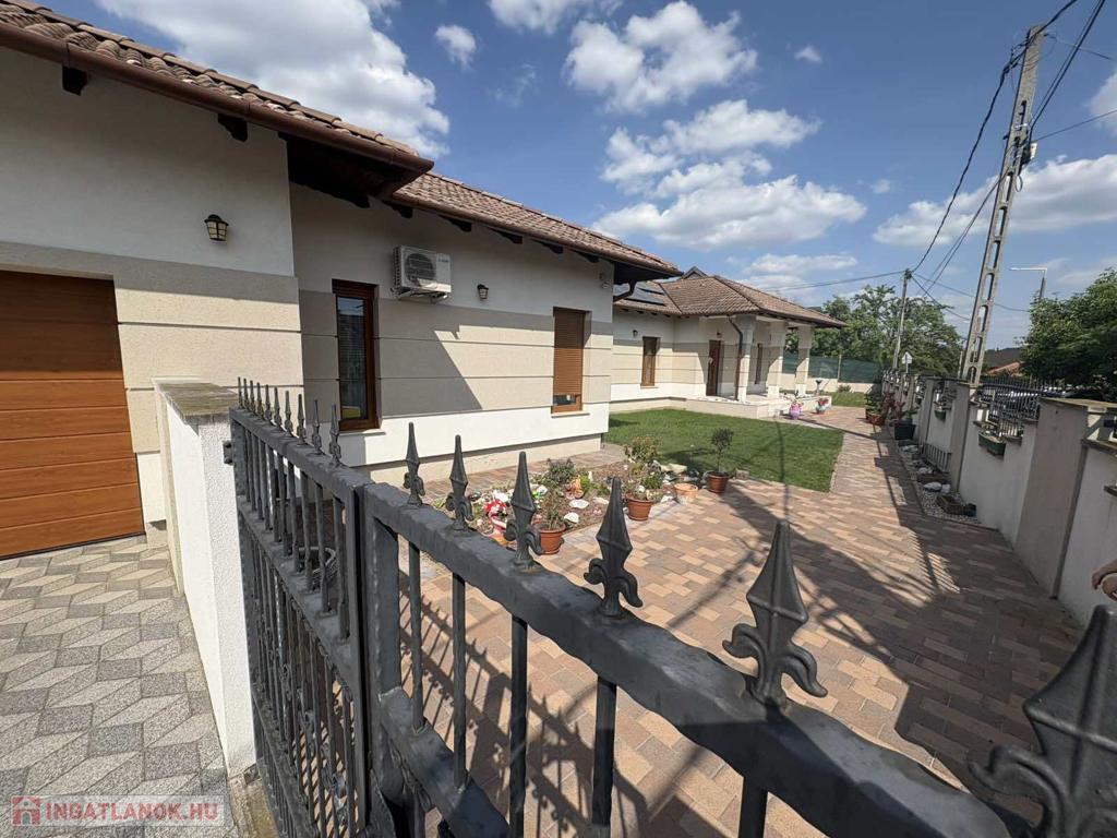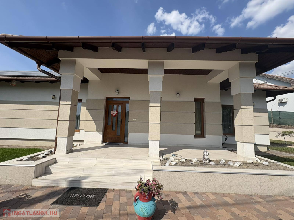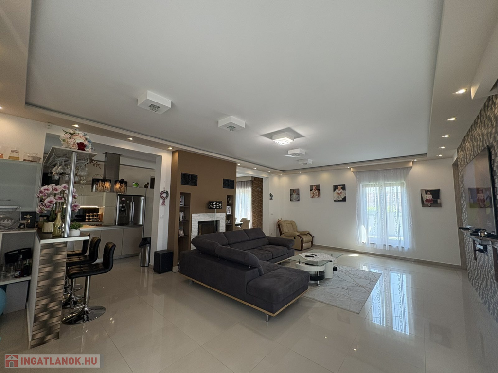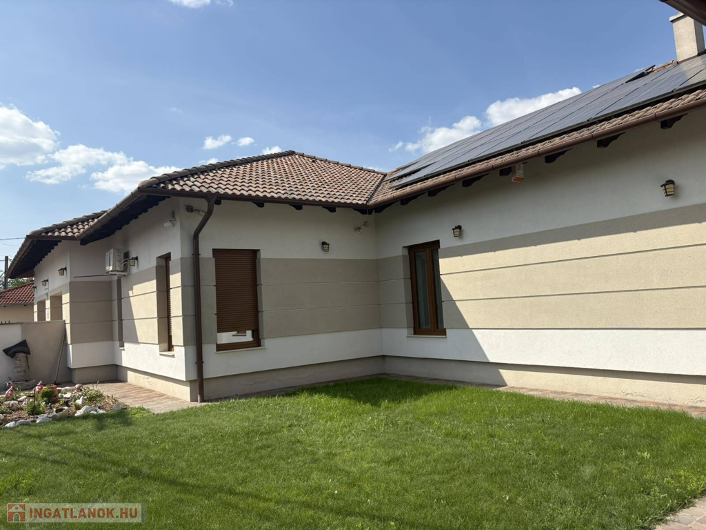 Modern, 2015-ben épült, egyszintes, luxuskategóriás tégla építésű családi ház prémium komforttal: gáz - villany fűtés, mennyezeti és oldalfali hűtés-fűtés, padlófűtés, napelemes rendszerrel – 1 302 m²-es telekkel a város szívében.