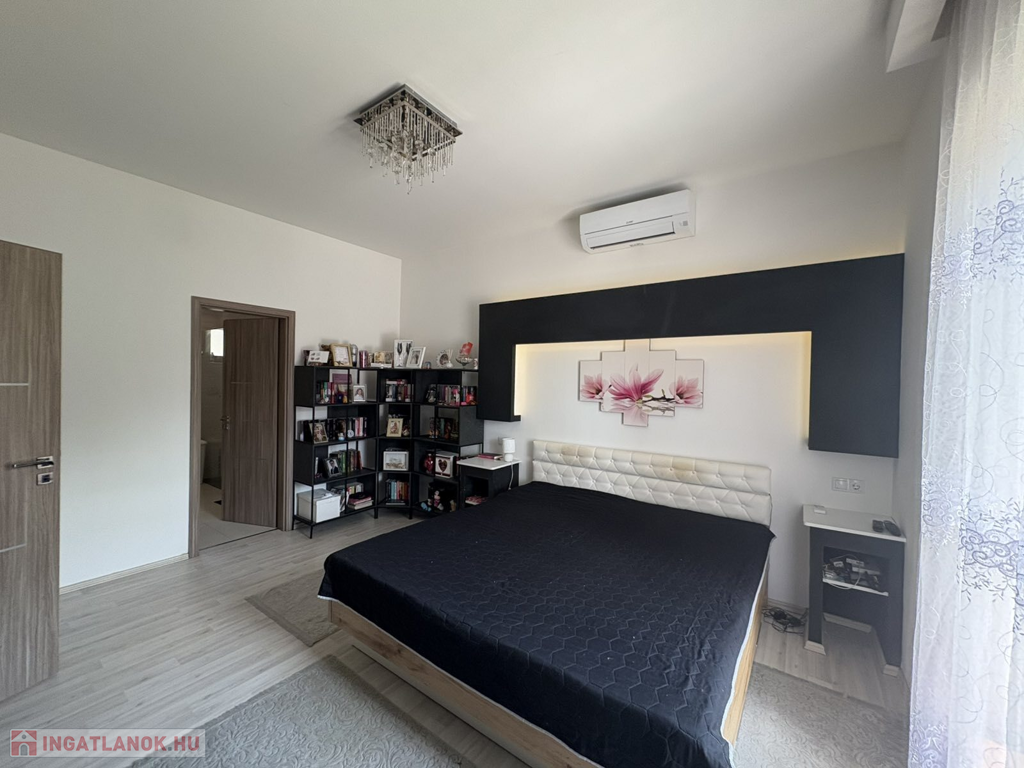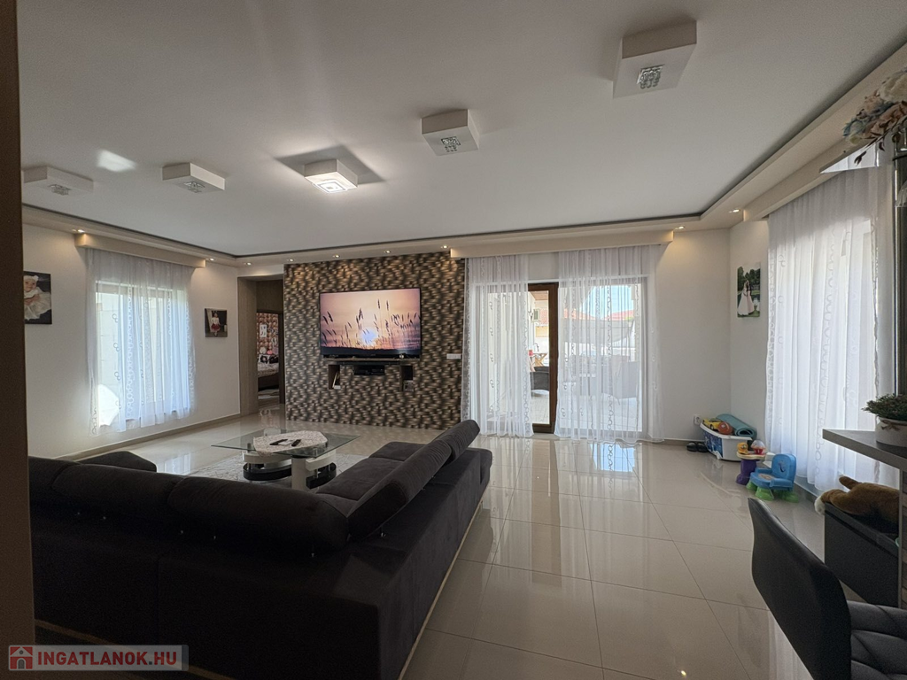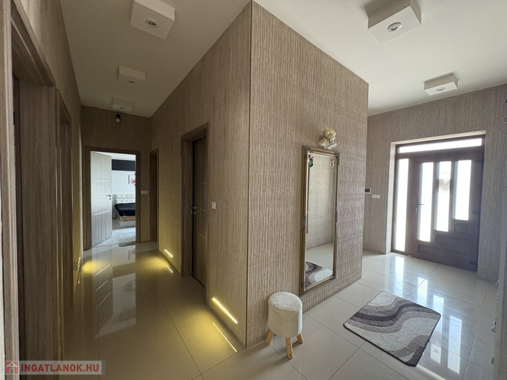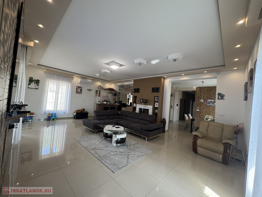 Modern, 2015-ben épült, egyszintes, luxuskategóriás tégla építésű családi ház prémium komforttal: gáz - villany fűtés, mennyezeti és oldalfali hűtés-fűtés, padlófűtés, napelemes rendszerrel – 1 302 m²-es telekkel a város szívében.