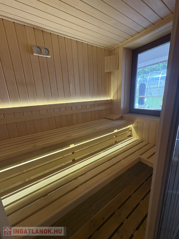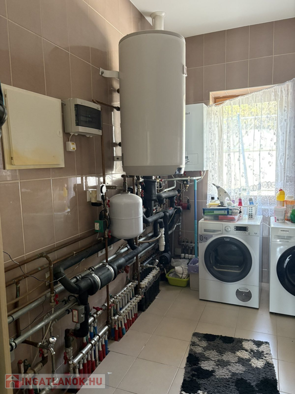 A ház műszaki felszereltsége kiemelkedő: a gázkazános fűtés stabil és hatékony hőellátást biztosít, miközben a mennyezeti és oldalfali hűtés-fűtés rendszer egész évben kellemes klímát nyújt. A ház energiatudatos megközelítését erősíti a tetőn telepített napelem rendszer, amely csökkenti az áramköltségeket, és növeli az ingatlan értékállóságát.