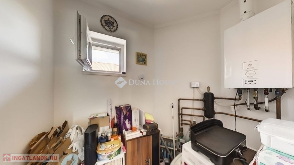 kamra helyiség, kazánnal és mosógép kiállással