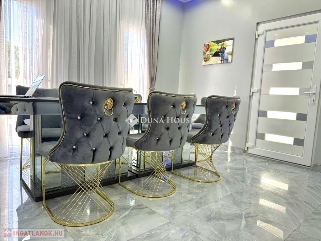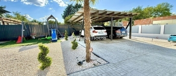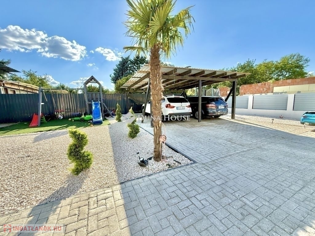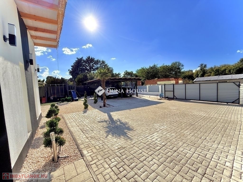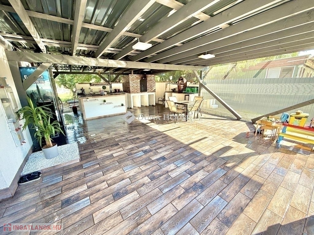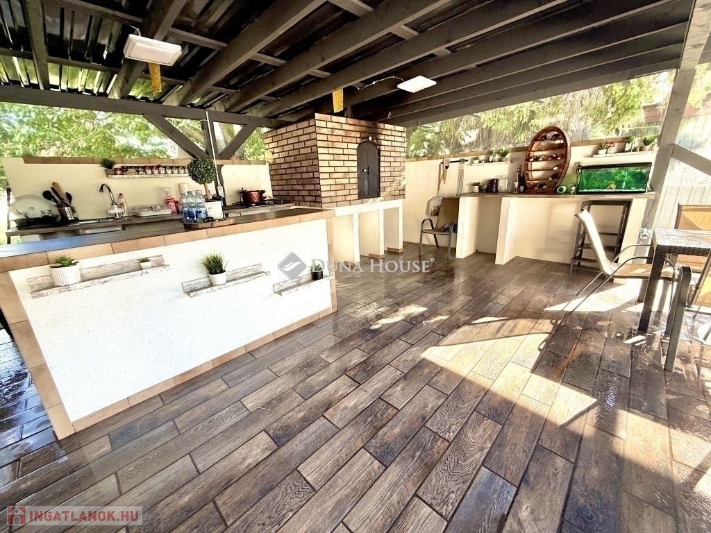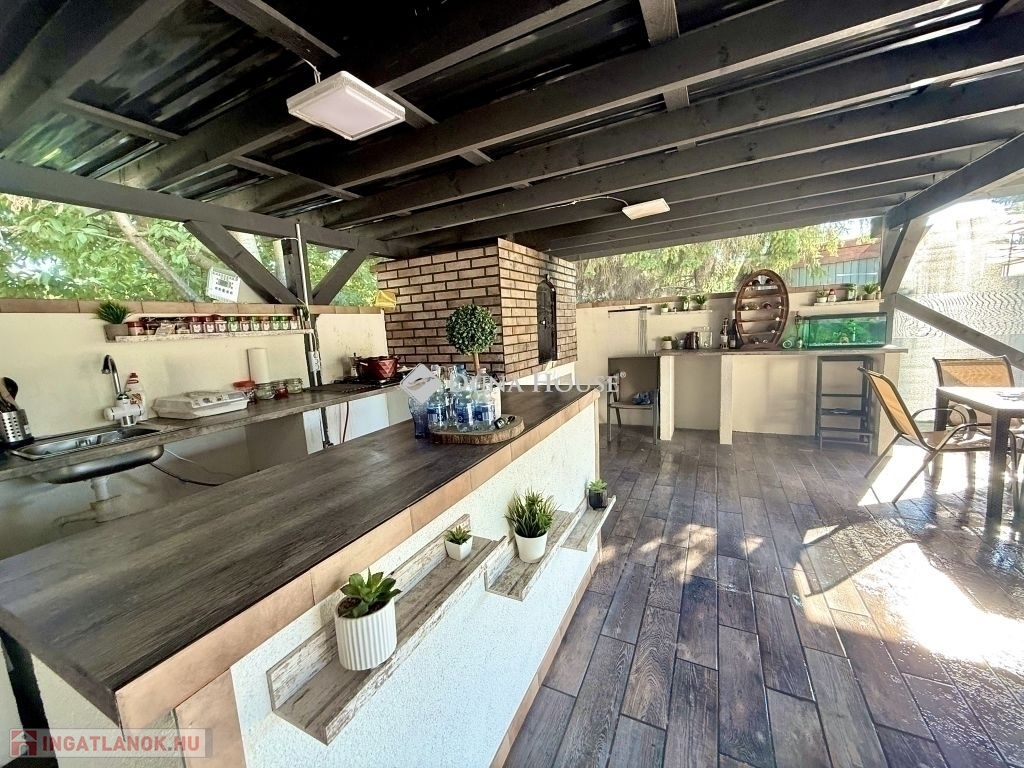 - az 540 m²-es parkosított telken minden adott a kényelmes mindennapokhoz és a kikapcsolódáshoz: térkövezett kocsibeálló, elektromos kapu, két fedett autóbeálló, fedett tároló, valamint egy hatalmas, 70 m²-es fedett terasz, amely kültéri konyhával, épített kemencével és teljes bútorzattal együtt várja új tulajdonosát.