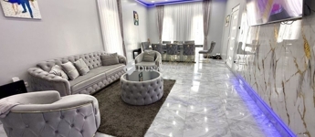 Az ár tartalmazza a teljes belső berendezést, a kültéri bútorokat, a játszóteret és a kemencét is.