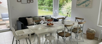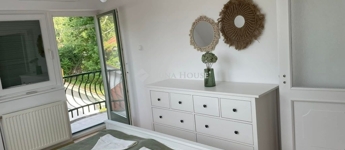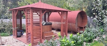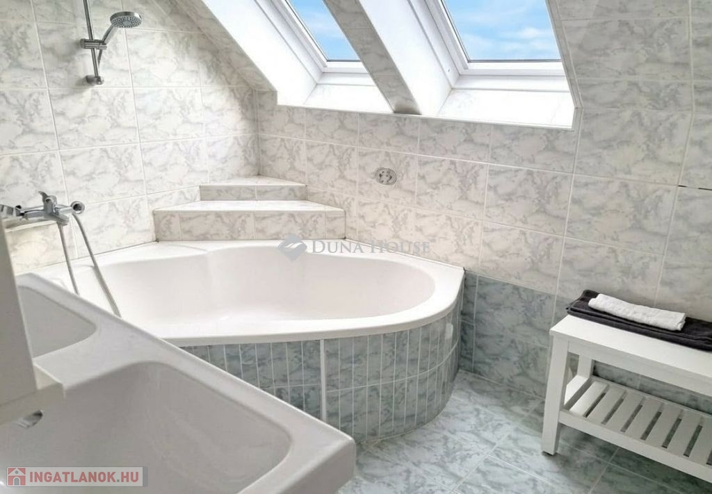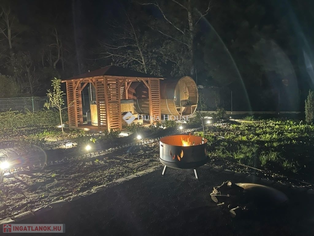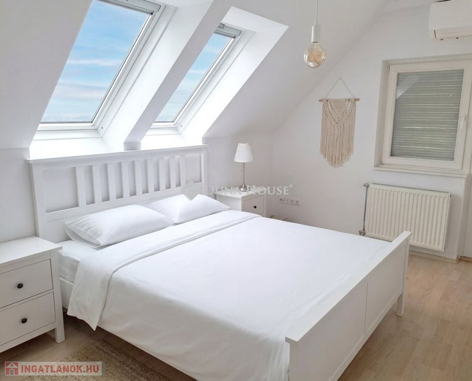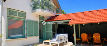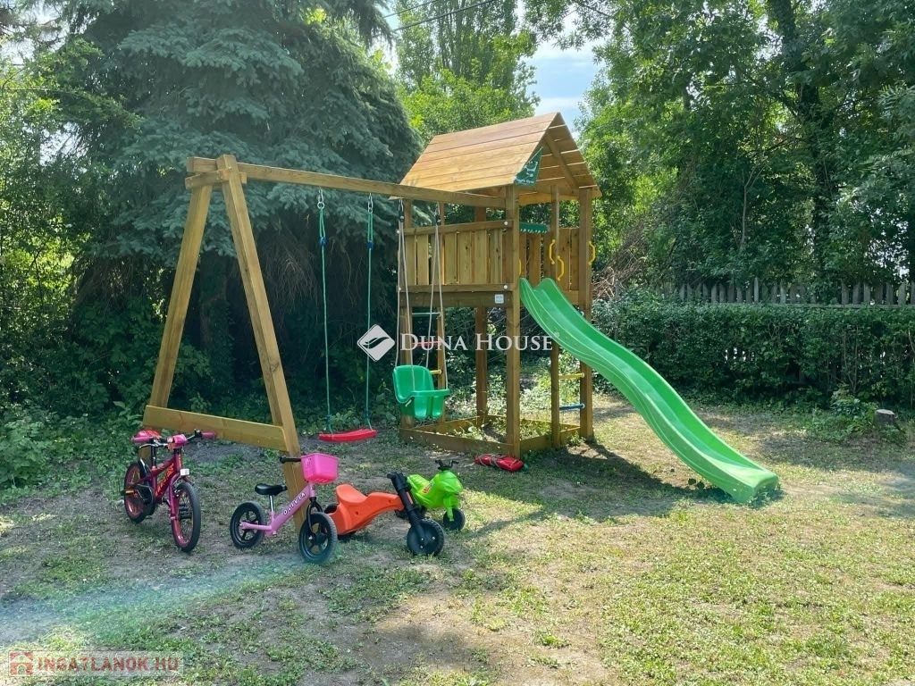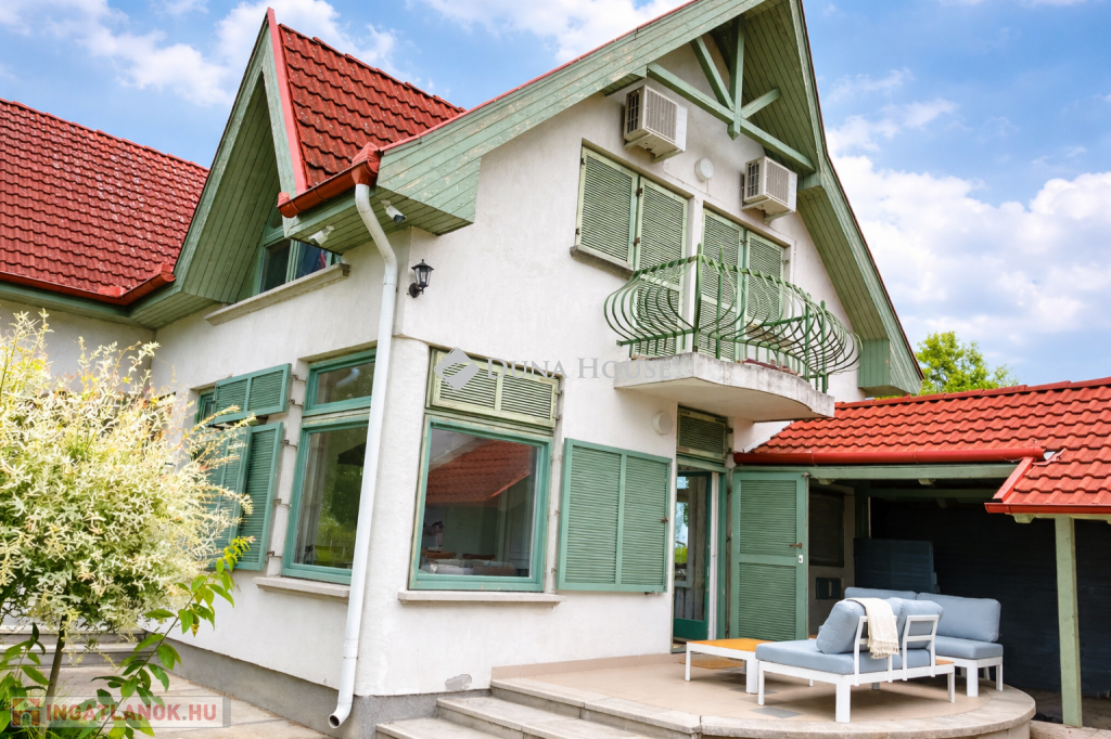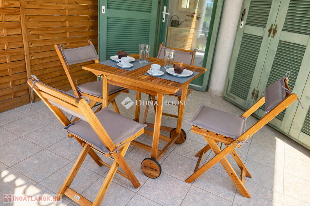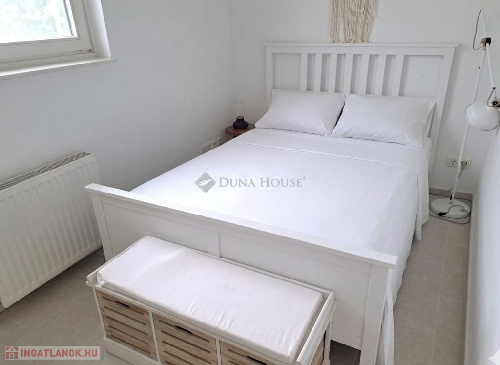 Szigligeten, a Fürdő utcában kínálunk megvételre egy ikerház keleti oldalát, teljesen elkülönített lakrésszel, kivételes elhelyezkedéssel, közvetlenül a Balaton közelében. Az ingatlan előtt futó út túloldalán már a vízpart található, a strand mindössze 120 méterre elérhető, miközben a településen nincs vasúti közlekedés, így a környezet nyugodt és zavartalan.A lakrész nettó 101 m² alapterületű, kétszintes kialakítású, jól használható, átgondolt térszervezéssel. A belső elosztás kifejezetten praktikus: összesen négy hálószoba, egy tágas nappaliétkező, két WC, egy zuhanyzó és egy kádas fürdőszoba áll rendelkezésre, így nagyobb család vagy vendégek fogadására is kényelmesen alkalmas. A felső szinten található egyik hálószobából balatoni panoráma nyílik, ami tovább növeli az ingatlan egyediségét.Az ingatlan jelenleg is sikeresen működő vendégházként üzemel, stabil bevételi lehetőséget biztosítva, így nemcsak saját használatra, hanem befektetésként is kiváló választás.A kertkapcsolat és a külső terek szintén erősítik az ingatlan használati értékét, a több terasz és a balatoni közelség valódi nyaraló hangulatot ad a mindennapokhoz. A kertben dézsa és szauna is kialakításra került, a gondozott zöldfelület fenntartását pedig automata locsolórendszer segíti.A lakrészhez két darab, egyenként 18 m²-es, önálló garázs tartozik, amelyek külön bejárattal rendelkeznek, és az egyikhez elektromos autótöltő tartozik.Műszaki szempontból az ingatlan jó állapotú, a fűtést gázkazán biztosítja, a melegvízellátás villanybojlerrel megoldott. A komfortot négy darab Daikin hőszivattyús klímaberendezés növeli, amelyek távolról is szabályozhatók, így az ingatlan érkezés előtt is a kívánt hőmérsékletre állítható. A működés korszerű és gazdaságos.A biztonságról kiépített kamerarendszer és riasztórendszer gondoskodik, a bejutást elektromos, távirányítással működtethető kapu biztosítja.A lakrészhez tartozó telek megközelítőleg 650 m², amely használati megosztás alapján került kialakításra, a pontos négyzetméter a megvásárlást követően kerül véglegesítésre.A jelen hirdetésben szereplő keleti lakrész mellett a nyugati oldal is megvásárolható, így igény esetén a teljes ingatlan egyben is elérhető, amely további lehetőségeket kínál nagyobb család vagy befektetési célú hasznosítás esetén.Az ingatlan egy helyrajzi számon található, ugyanakkor ügyvéd által készített használati megosztással rendelkezik, a két lakrész egymástól fizikailag is teljesen leválasztott, külön bejárattal és külön közműórákkal használható. A kialakításának köszönhetően használatában egy önálló családi ház érzetét nyújtja.