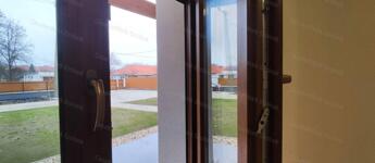 3 rétegű, hő- és hangszigetelt fa hatású műanyag nyílászárók, redőnnyel és szúnyoghálóval felszerelve