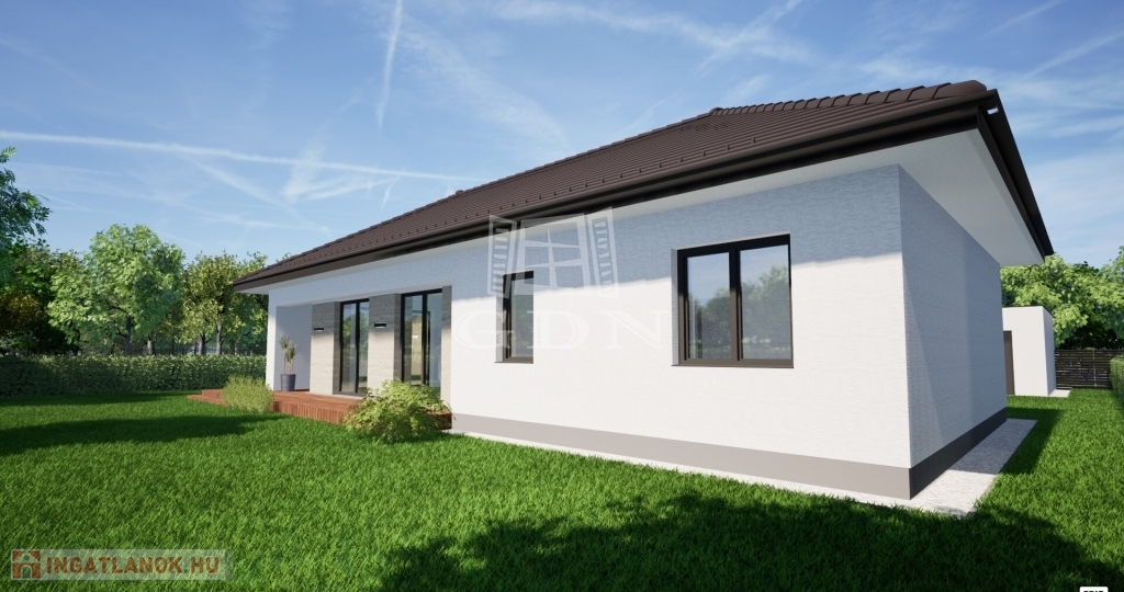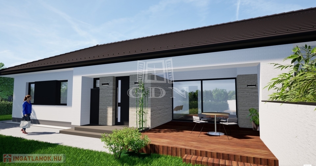 Szombathely dinamikusan fejlődő városrészén új építésű ikerház eladó. Oladi-plató egyik legkönnyebben megközelíthető utcájában épülő ikerház, neves építész iroda közreműködésével valósul meg. A jól átgondolt tervezésnek köszönhetően kényelmes otthona lehet nagy családoknak is. Falazata Wienerberger Porotherm téglával készül, 15 cm-es EPS szigeteléssel. Rovar, gomba és lángmentesítővel kezelt fa födémre, 30 cm ásványgyapot szigetelés kerül. A padozatba 10 cm vastag EPS hab hőszigetelés készül. Magas tetőre Terrán vagy Bramac betoncserép tervezett. Műanyag nyílászárói fokozottan hang és hőszigeteltek, 5 kamrás, 3 rétegű üvegezéssel, fehér színben kerülnek beépítésre. Bejárati ajtaja több ponton záródó biztonsági ajtó, választható panellel. Belső ajtók különböző dekorfóliával kérhetők. Az ingatlan fűtéséről, meleg vízellátásáról a háztartási helyiségben elhelyezett 10 kw teljesítményű Gree Versati 3 hőszivattyú gondoskodik, padlófűtéses hőleadással, szabályozható termosztáttal.
