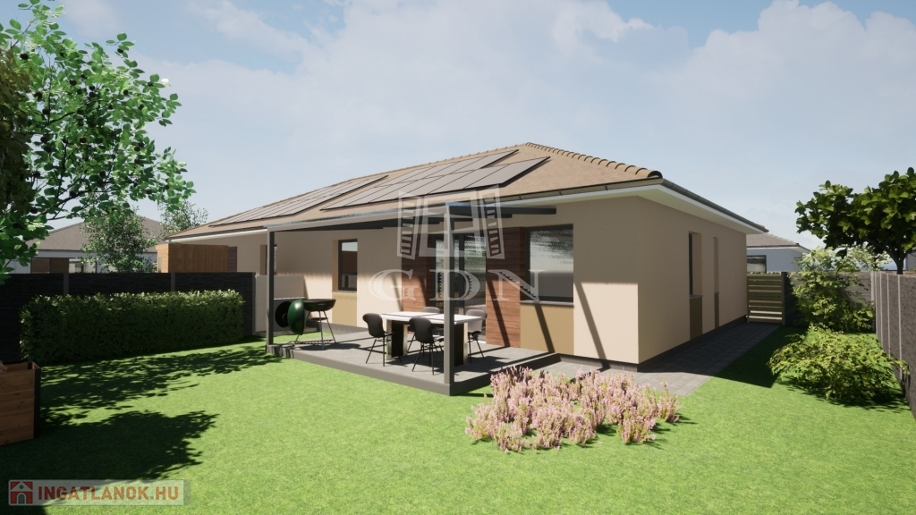 DIE NEUE WELT DER WOHNGESTALTUNG. In Szombathely wächst der bereits bekannte WOHNPARK ÚJVILÁG in neuem Tempo. Es stehen sowohl freistehende Einfamilienhäuser als auch Doppelhäuser mit einer Größe von 85 m2 bis 139 m2 zur Verfügung. Funktion, Intimität, Komfort, bewusste, intelligente und umweltfreundliche Lösungen sind die wichtigsten Designaspekte. Die geplanten Innenräume können je nach Kundenwunsch verändert werden. Von der Lage her ist es die bestmögliche Wahl, da es nah am Stadtzentrum liegt, die Infrastruktur hervorragend ist und die Schnellstraße, die die Stadt umgeht, gut erreichbar ist. Investoren haben fast ausschließlich Pläne ausgearbeitet, die die modernen, energieeffizienten und budgetfreundlichen Lösungen von heute umfassen. - WÄRMEPUMPE Die Beheizung und Kühlung der Immobilie erfolgt über eine Luft-Wasser-Wärmepumpe mit 250-Liter-Warmwasserspeicher, im Haus wird eine Rehau-Fußbodenheizung installiert, die die Wohnungseinrichtung erleichtert. Die Grundinstallation des Wassersystems erfolgt ebenfalls aus dem Rehau-System, im Preis ist auch ein Wasserenthärter enthalten. - SOLARANLAGE In Verbindung mit der mechanischen Anlage der Immobilie ist eine 5-kW-Solaranlage installiert, die einen Hybrid-Wechselrichter umfasst, so dass ein 10-15-kW-Batteriesystem angeschlossen werden kann. Das Batteriesystem ist gegen Aufpreis erhältlich. - REGENWASSERSAMMLUNG Das Regenwasser wird an einen 5 m3 großen Regenwassersammler angeschlossen, der mit einem Abfluss ausgestattet ist und sich hervorragend zur Bewässerung der Vegetation eignet. Dadurch entfällt das Bohren eines Brunnens und der Wasserhaushalt des Gebietes wird nicht gestört. Zusätzlicher Inhalt, der im Grundpreis enthalten und ein untrennbarer Bestandteil davon ist: - KÜCHENMÖBEL Zu jeder Immobilie gehören Küchenmöbel im Wert von 1,5 Mio. HUF. - GEPFLASTERTER INNENHOF. Pflasterung des zum Grundstück gehörenden Gehwegs, der Auffahrt und der Verkehrsflächen, ca. 60-100 m2. Außerdem wird im Hof ein Gartenwasserhahn gebaut. Vor den Objekten werden zudem Gästeparkplätze geschaffen. Überdachte Parkplätze stehen optional zur Verfügung. - ZAUN Errichtung eines Zauns an der Straßenfront des Grundstücks rechts und links sowie des Trennzauns zwischen den Grundstücken (Betonelement mit Flächenmuster) in einer Höhe von 1,75-2 m. Weitere technische Inhalte: Tragende Wände bestehen aus Porotherm 30 X-therm Rapid Ziegeln, die Trennwände der Wohnungen bestehen aus schalldämmenden Porotherm 30 AKU Z P15 Ziegeln. Die Koszorú Porotherm U-Schalung wird aus Element 30 gebaut, eine Stahlbetonkonstruktion wird nach einem statischen Plan erstellt. Hier wird die nach den Architekturplänen gefertigte Dachkonstruktion aus Nagelplatten mit computergestützter Dachkonstruktion platziert. Diese Dachkonstruktion ermöglicht es, die Innenräume nach Wunsch zu variieren. Nach der Erstellung der Abdichtung werden Tondach Planoton 9 Dachziegel mit den daran befestigten Zubehörteilen und Dachelementen auf das Dach gelegt. Zinnmaterial und -elemente sind ein integraler Bestandteil dieser Familie. Die Trennwände sind auf einer werkseitig hergestellten 7,5 cm dicken Gipskartonkonstruktion montiert, mit Wärme- und Schalldämmung auf beiden Seiten, doppelten Gipskartonplatten angebracht, was zu einer 12,5 cm dicken Trennwand anstelle der herkömmlichen 10 cm dicken Trennwand führt. Der große Vorteil dieser Technologie besteht darin, dass die 10-cm-Keramiktrennwand bei der Montage nicht geschnitten oder geschwächt werden muss, die Montage erfolgt in der 7,5-cm-Struktur. Den Boden bilden die Elemente der Dachkonstruktion, an denen eine Gipskarton-Zwischendecke befestigt ist, wodurch eine 20 m2 große Packfläche entsteht, die mit Hilfe eines Dachbodengangs erreicht werden kann. Auch die tragenden Wände und die Schallschutzwand werden mit Gipskartonplatten verkleidet, so dass der gesamte Innenraum eine homogene, äußerst präzise Oberfläche bildet. Fensterläden Hochwertige Kunststofftüren und -fenster mit erhöhter Schall- und Wärmedämmung sind in 3-Schicht-5-Kammer-Bauweise eingebaut, ausgestattet mit Moskitonetzen und Aluminium-Jalousien. Eingangstür ist optional. Innentüren können nach vom Investor vorgegebenen Mustern des Herstellers oder Auftragnehmers bis zu einem Bruttowert von 100.000 HUF/Stück ausgewählt werden. Das Garagentor wird in einer motorisierten Sektionalversion hergestellt. Das Gebäude wird mit einer 10 cm dicken XPS-Sockeldämmung, einem Sockelputz, einer 20 cm dicken Graphitdämmung an der Fassade und einem 1,5 cm dicken Baumit-Spachteldünnputz verkleidet. Auf der Leichtbauplatte ist eine feuerbeständige Dämmung angebracht. Die Häuser werden über ein dreiphasiges Elektrosystem mit einer Leistung von 3x25 A verfügen. Im Kaufpreis sind außerdem die Vorbereitung der E-Auto-Ladestation, die Grundinstallation einer Alarmanlage und der Bau einer Gegensprechanlage enthalten. Es stehen Kalt- und Warmbezüge zur Verfügung. Warme Beläge (Laminatboden) werden mit 5.000 HUF/m2 brutto maximiert, kalte Beläge (Bodenbeläge) mit 8.000 HUF/m2 brutto. Sollten die ausgewählten Produkte diese Preise überschreiten, können Kunden selbstverständlich gegen Aufpreis Bezüge ihrer Wahl wählen. Wenn Sie weitere Informationen wünschen, suchen Sie bitte! Die vielleicht letzte gute Option ist im Hinblick auf die Lage in unserer Stadt der Wohnpark Újvilág. Nutzen Sie die Dienstleistungen unserer Kanzlei. Wir stehen Ihnen zur Verfügung, wenn Sie eine Innenarchitekturberatung benötigen. 29/B
