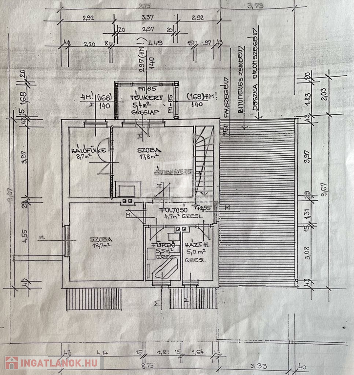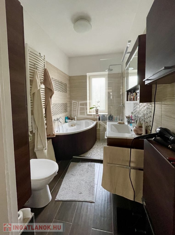 - illetve egy utcafrontról nyíló, két részre tagolt, WC-vel és kézmosóval rendelkező iroda/üzlethelyiséget is magába foglal az ingatlan.
