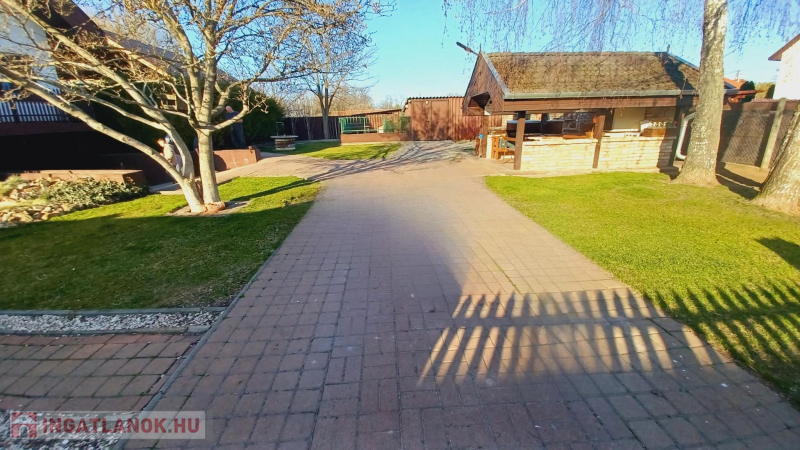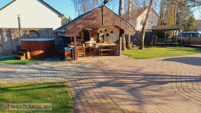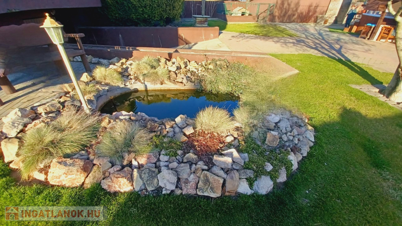 A 826 m²-es telken egy gondozott, kellemes hangulatú udvar található, ahol fúrt kút, kerti tó, fedett kiülő és még egy garázs is rendelkezésre áll. A kert ideális helyszínt biztosít pihenéshez, családi és baráti összejövetelekhez. A környék csendes, rendezett, barátságos szomszédokkal, miközben a központi elhelyezkedésnek köszönhetően minden fontos szolgáltatás könnyen elérhető.