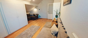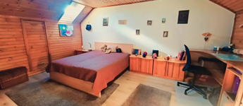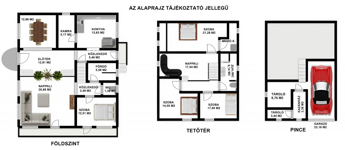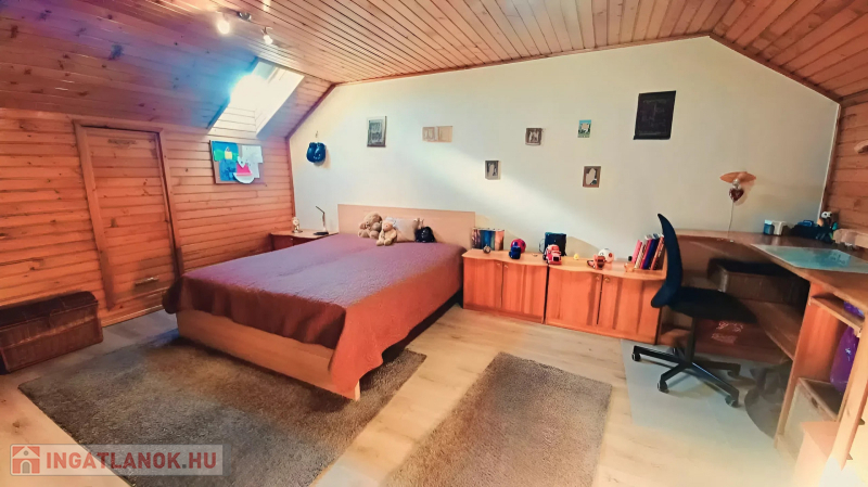 A tetőtérben egy további nappali, három külön nyíló szoba kapott helyet, melyek mindegyikében beépített gardrób vagy praktikus tároló található. Ezen a szinten egy fürdőszoba WC-vel egyben, valamint egy külön mosóhelyiség is kialakításra került.