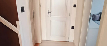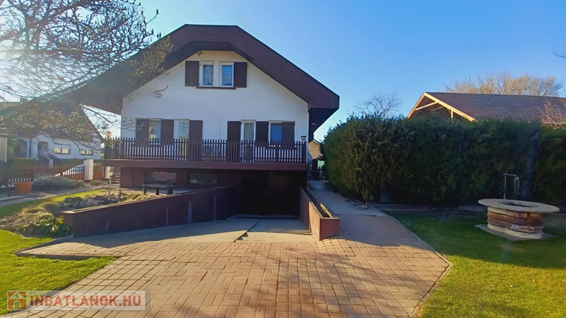 A földszinten egy hatalmas, világos nappali fogadja az érkezőket, amelyhez étkező kapcsolódik. A nappali különlegessége egy nagyon hangulatos kandalló, amely a hidegebb napokon meghitt, otthonos légkört teremt. Ezen a szinten található továbbá egy hálószoba, egy tágas konyha kamrával, fürdőszoba, külön WC, valamint innen érhető el a pincelejáró és a tetőtérbe vezető lépcső is. A beépített konyhabútor a vételár részét képezi.