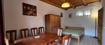 Az ingatlan különlegessége nem csupán a szépen restaurált, eredeti fa gerendás parasztházban rejlik, hanem a hozzá kapcsolódó, bővítési potenciált rejtő apartmanlakásban, garázsban, patakban és gondozott kertben, amely a vidéki élet minden varázsát megidézi.