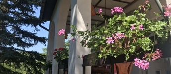 Fenyőfa, tuják és fűzfa ékesíti az udvart. Öntözési rendszert fúrt kút biztosítja.