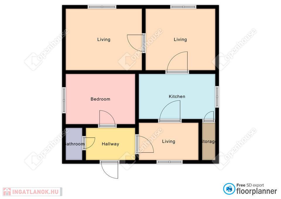 Az ingatlanban 4 szoba, 1 konyha, valamint 1 fürdőszoba található.