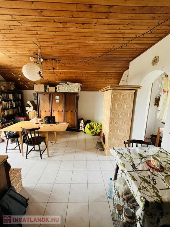 A ház 60 m2, két szinten. A felső szint 30 m2, otthonos lakótérnek van kialakítva barátságos cserépkályha társaságában.