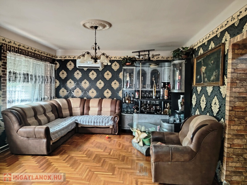 Tatárszentgyörgy kedvelt részén, csendes kis aszfaltos utcában értékesítésre kínálok egy 200 m2-es, jelenleg 2 generációs 2 szintes családi házat, amelyben további + 1 generáció számára ki lehet alakítani a lakhatást. Az épület a 80-as években épült beton alapon, tégla falazattal, a tető héjazata cserép. A nagy házban megtalálható: előszoba, nappali, szoba, dolgozószoba, konyha, fürdőszoba. A nagy háznak 30 cm vastag beton födéme van. Felette a tetőtérben: 3 szoba, gardrób, és egy kialakítható fürdőszoba. A ház folytatásában található egy nagy 40 m2-es üres helyiség, mely szintén kialakítható lakhatásra. Ebből nyílik még egy lakrész: 2 szoba, étkezőés konyha, fürdőszoba. Az épületek fűtése vegyes tüzelésű kazánnal, gázkazánnal illetve 2 klímával is lehetséges. Az udvaron van egy fedett terasz, garázs szerelő aknával, kamrák, tárolók és még egy száraz pince is helyet kapott. A kert számos lehetőséget rejt a gazdálkodásra, állattartásra, növénytermesztésre, pihenésre , mert igen nagy : 2439 m2-es. A ház lokációja kiváló: pár percre található a Budapest - Népligetbe, vagy Kecskemétre is közlekedő autóbusz megálló. Az M5 autópálya Örkényi lehajtója 10 perces autóúttal elérhető. A közelben boltok, bölcsöde, iskola, óvoda, orvosi rendelő pár perces sétával elérhetőek.