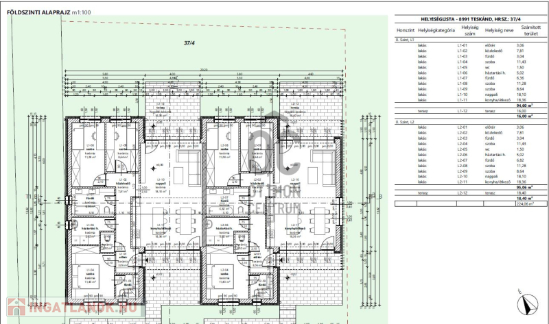 - Földszintes 94 nm-es, 4 szobás ikerház