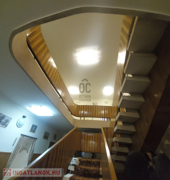 - Tágas közlekedő és lépcsőház, ahonnan a szobák nyílnak,