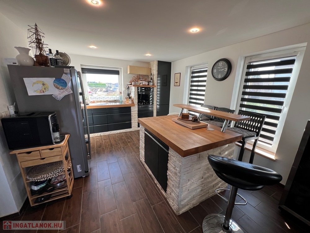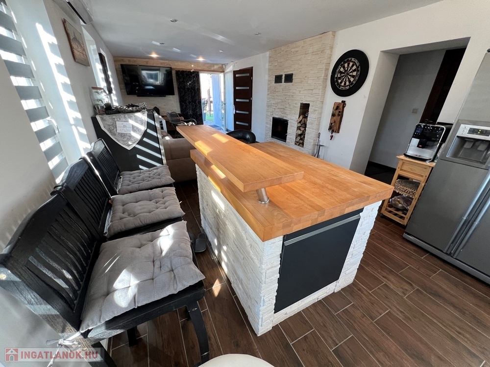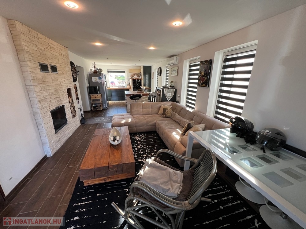 Töltéstava kedvelt részén, Győr városától alig 5 perces autótávolságra, 1650 m2-es, 21 m SZÉLES UTCAFRONTÚ, vízzel, villannyal, csatornával (gáz utcában) felszerelt telken lévő, szinte teljes felújításon átesett (homlokzati hőszigetelés, nyílászáró-, tető-, víz-, villanyvezetékcsere, burkolatcsere, beltéri ajtók cseréje, új konyhabútor, új helyiségek kialakítása, fürdő – WC felújítás, stb.) amerikai konyha - étkező - nappali + 4 hálószobás, 136 m2 hasznos alapterületű, KLIMATIZÁLT, két szintes (duplakomfortos) családi ház, 13,35 m-es TERASSZAL eladó!