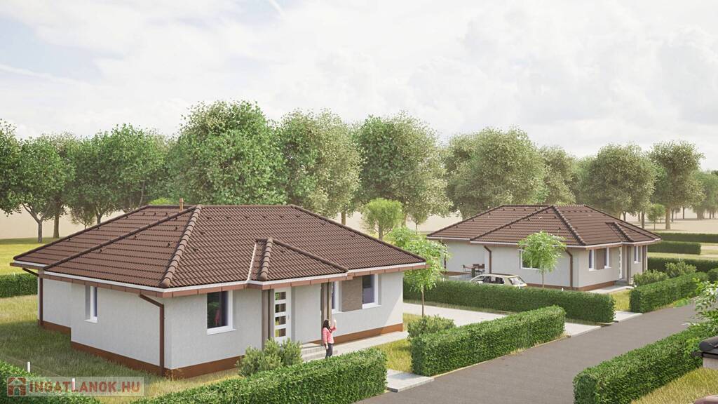 A két ház egy 1501 m2-es telekre épül, mindkettő saját kerítéssel körbe keríthető, közös területük nincs. Most még mindkét ház eladó.