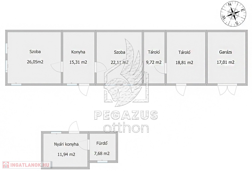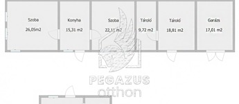 A főépületben a jelenleg kialakított lakórész 64m², két hangulatos szoba hajópadlóval, egy szoba pedig praktikus PVC burkolattal várja új lakóit. A ház végében található, két helységből álló, 45 m²-es tároló, melyekből könnyedén kialakíthatóak további lakóhelyiségek, így az ingatlan a jövőbeni bővítésre is kiválóan alkalmas. Mindezen felül egy garzás is található az épület legvégében.