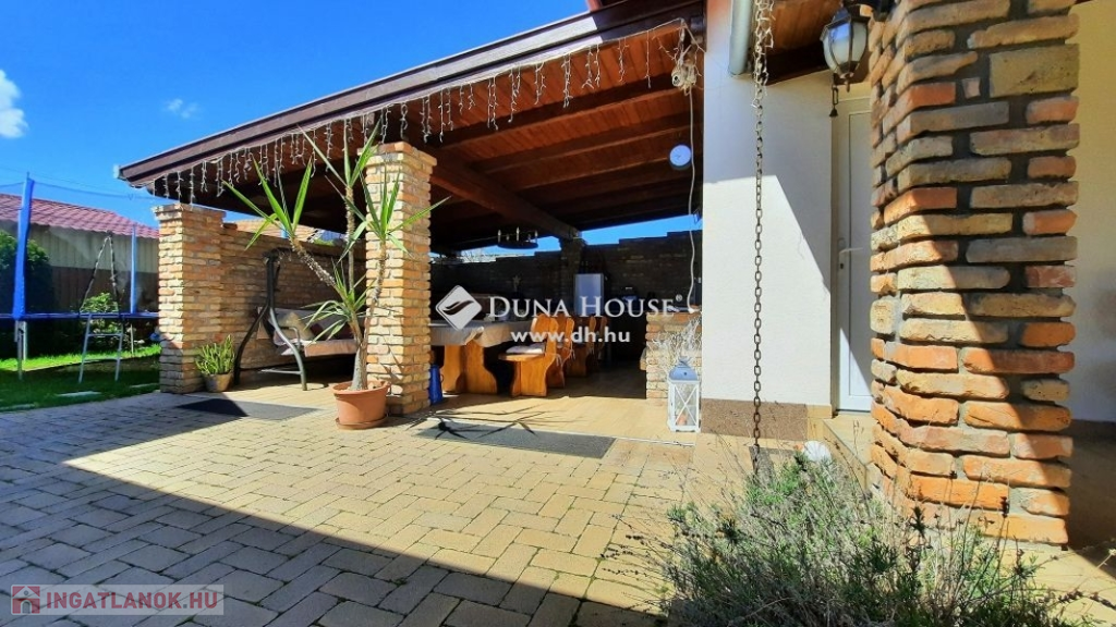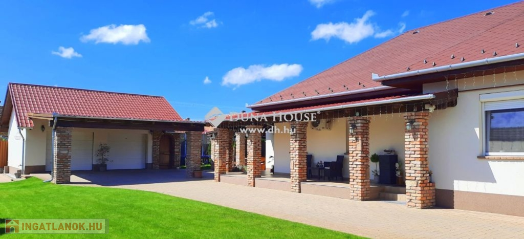 Újhartyánon eladó egy 122,5 nm + 30 nm fedett teraszos, 3 szoba + amerikai konyhás nappalis családi ház, dupla garázzsal, rusztikus kerti kiülővel, dézsafürdővel!