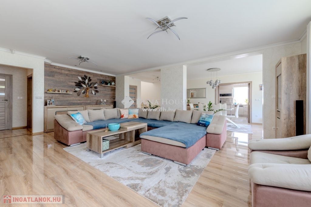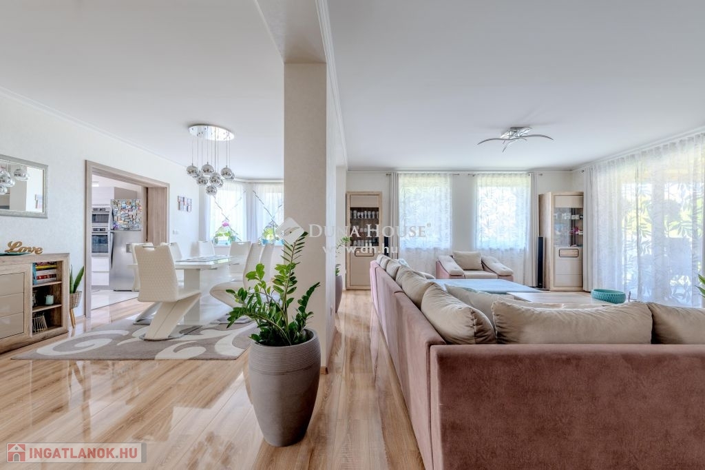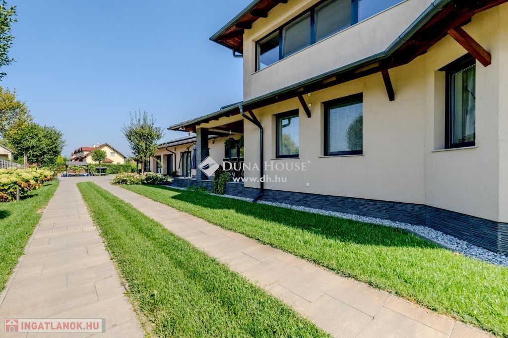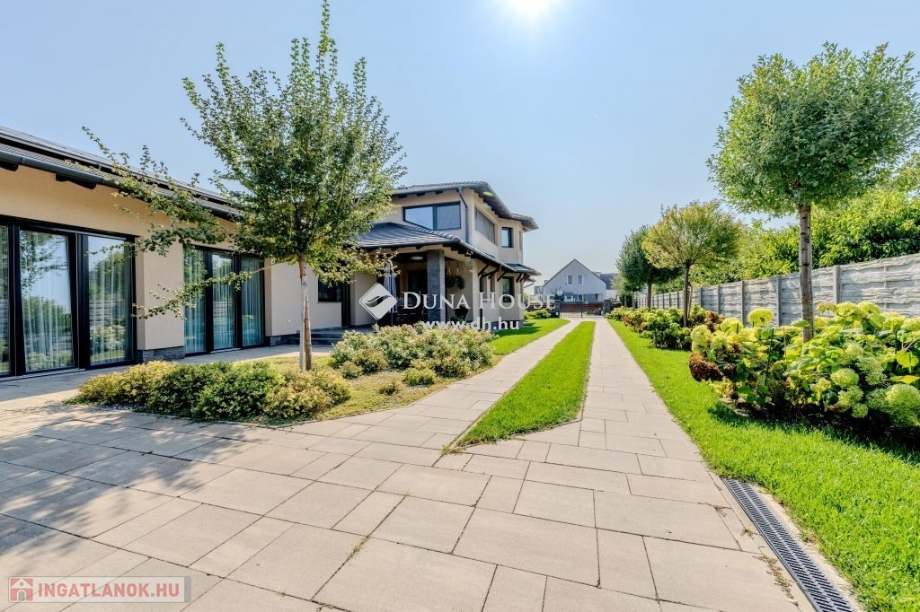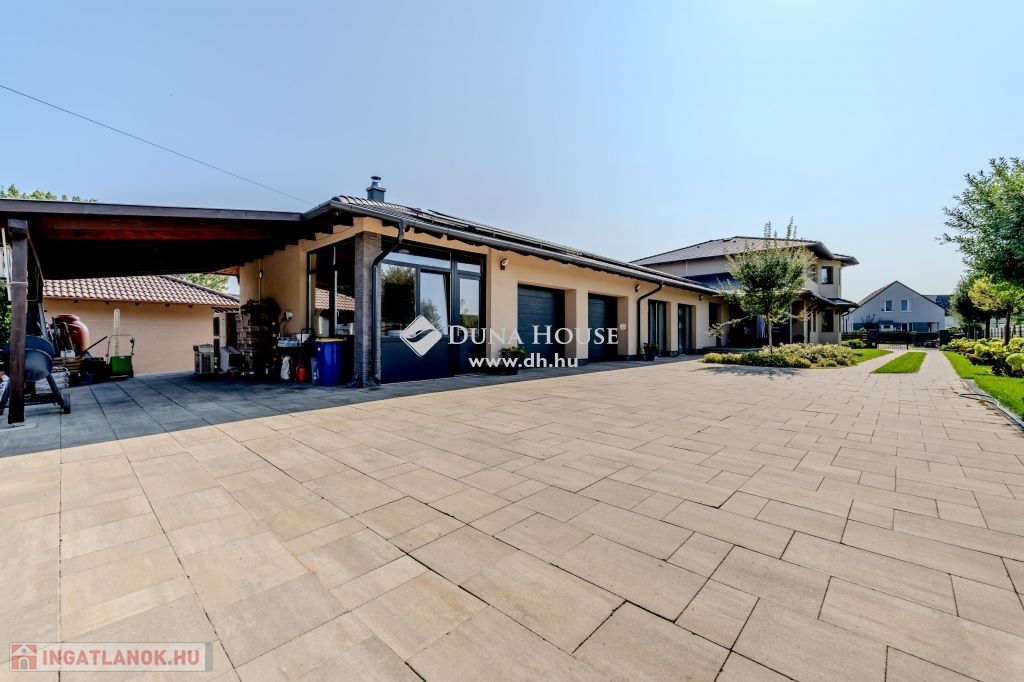 Eladó magas minőségű, többgenerációs családi ház Üllő Sportliget lakóparkjában – teljes berendezéssel!Üllő egyik legkeresettebb részén, a Sportliget lakóparkban kínálok eladásra egy kivételes, 1718 m²-es telken fekvő, magas minőségű, többgenerációs családi házat.A ház hasznos alapterülete összesen 355 m², amely bőséges helyet biztosít több generáció kényelmes együttéléséhez.A jelenlegi állapotában az emeleten egy teljesen külön lakórész lett kialakítva.A földszinten tágas nappali mellett három lakószoba található. Az előszobából átgondolt praktikus gardróbot alakítottak ki. A konyha a tolóajtó megoldásával egy légtérben lehet a nappali és étkezővel,vagy akár a kíváncsi szemek elől el is rejthető. A tágas közlekedőből közelíthető meg a konditerem ahol a jakuzzi kényelméből akár a kedvenc filmjeinket nézhetjük.A garázs 2 autó beállására alkalmas,de további fedett autóbeállás is lehetséges elektromos töltés is rendelkezésre áll.Tárolók és háztartási helységek segítenek a rendszerezésben.A kert hátsó részében mobil medence terasszal nyújt pihenésre időt egy fárasztó nap után.A kert gyönyörű,gondozott szépen parkosított.Főbb jellemzők:Telek mérete: 1718 m²Hasznos alapterület: 355 m²Többgenerációs kialakítás: Az emeleti lakrész önálló lakásként funkcionálFöldszinti extrák: Konditerem jakuzzival, garázs, kazánház, tárolóParkosított kert: Öntözőrendszerrel, gondosan karbantartott növényzettelModern technológia: Hőszivattyú, napkollektorok, elektromos autó töltési lehetőségKényelmi extrák: Fedett teraszok, fedett autóbeálló a duplagarázson kívül, elektromos redőnyökMediterrán stílus: A ház mediterrán jellegű, a hozzá illő tetőfedésselA vételár tartalmazza az összes bútort és berendezést!Miért érdemes Üllőt választani?Kiváló elhelyezkedés: Üllő Budapest közvetlen vonzáskörzetében található, mindössze 20 percnyi autóútra a fővárostól, az M0-ás autóútnak köszönhetően. Így ideális választás mindazok számára, akik a város nyüzsgésétől távol, de annak közelségében szeretnének élni.Modern infrastruktúra: Üllő dinamikusan fejlődő város, ahol számos új szolgáltatás és létesítmény érhető el. A városban több óvoda, iskola, egészségügyi intézmény, bevásárlási lehetőség és szabadidős tevékenység várja a lakókat.Kiváló közlekedés: A város vasútállomása révén könnyen elérhető Budapest, emellett a környék tömegközlekedése is jól szervezett.Sport- és szabadidős lehetőségek: A városban több sportpálya, játszótér és zöldterület található, amelyek hozzájárulnak a kellemes, aktív életmódhoz.Ez az ingatlan tökéletes választás mindazok számára, akik egy tágas, több generáció számára is alkalmas, modern, minden kényelmi extrával felszerelt otthont keresnek, mindezt Budapest közelségében, de egy nyugodt, zöldövezeti környezetben.Ne hagyja ki ezt a páratlan lehetőséget! Lépjen kapcsolatba velünk további információkért és a megtekintésért!