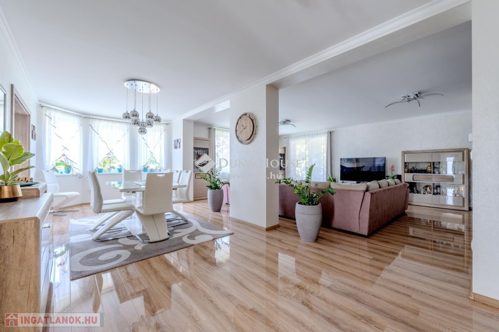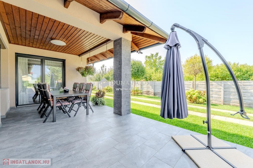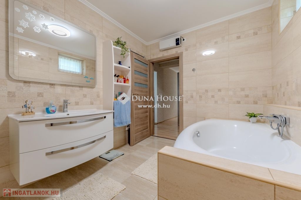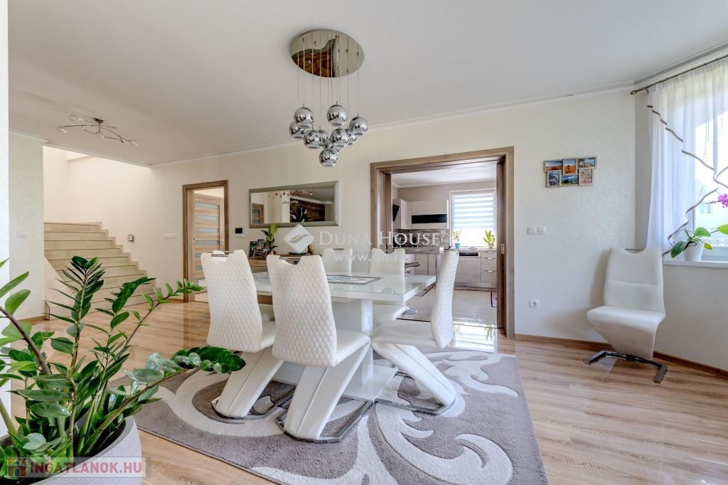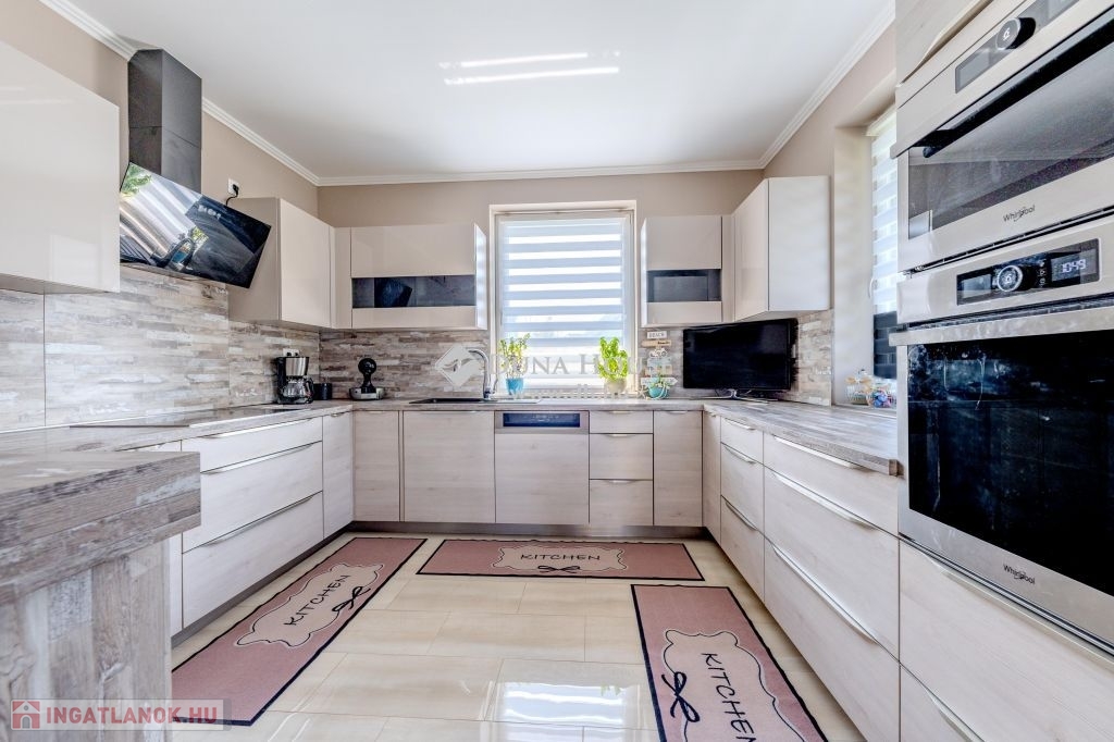 Eladó magas minőségű, többgenerációs családi ház Üllő Sportliget lakóparkjában – teljes berendezéssel!Üllő egyik legkeresettebb részén, a Sportliget lakóparkban kínálok eladásra egy kivételes, 1718 m²-es telken fekvő, magas minőségű, többgenerációs családi házat.A ház hasznos alapterülete összesen 355 m², amely bőséges helyet biztosít több generáció kényelmes együttéléséhez.A jelenlegi állapotában az emeleten egy teljesen külön lakórész lett kialakítva.A földszinten tágas nappali mellett három lakószoba található. Az előszobából átgondolt praktikus gardróbot alakítottak ki. A konyha a tolóajtó megoldásával egy légtérben lehet a nappali és étkezővel,vagy akár a kíváncsi szemek elől el is rejthető. A tágas közlekedőből közelíthető meg a konditerem ahol a jakuzzi kényelméből akár a kedvenc filmjeinket nézhetjük.A garázs 2 autó beállására alkalmas,de további fedett autóbeállás is lehetséges elektromos töltés is rendelkezésre áll.Tárolók és háztartási helységek segítenek a rendszerezésben.A kert hátsó részében mobil medence terasszal nyújt pihenésre időt egy fárasztó nap után.A kert gyönyörű,gondozott szépen parkosított.Főbb jellemzők:Telek mérete: 1718 m²Hasznos alapterület: 355 m²Többgenerációs kialakítás: Az emeleti lakrész önálló lakásként funkcionálFöldszinti extrák: Konditerem jakuzzival, garázs, kazánház, tárolóParkosított kert: Öntözőrendszerrel, gondosan karbantartott növényzettelModern technológia: Hőszivattyú, napkollektorok, elektromos autó töltési lehetőségKényelmi extrák: Fedett teraszok, fedett autóbeálló a duplagarázson kívül, elektromos redőnyökMediterrán stílus: A ház mediterrán jellegű, a hozzá illő tetőfedésselA vételár tartalmazza az összes bútort és berendezést!Miért érdemes Üllőt választani?Kiváló elhelyezkedés: Üllő Budapest közvetlen vonzáskörzetében található, mindössze 20 percnyi autóútra a fővárostól, az M0-ás autóútnak köszönhetően. Így ideális választás mindazok számára, akik a város nyüzsgésétől távol, de annak közelségében szeretnének élni.Modern infrastruktúra: Üllő dinamikusan fejlődő város, ahol számos új szolgáltatás és létesítmény érhető el. A városban több óvoda, iskola, egészségügyi intézmény, bevásárlási lehetőség és szabadidős tevékenység várja a lakókat.Kiváló közlekedés: A város vasútállomása révén könnyen elérhető Budapest, emellett a környék tömegközlekedése is jól szervezett.Sport- és szabadidős lehetőségek: A városban több sportpálya, játszótér és zöldterület található, amelyek hozzájárulnak a kellemes, aktív életmódhoz.Ez az ingatlan tökéletes választás mindazok számára, akik egy tágas, több generáció számára is alkalmas, modern, minden kényelmi extrával felszerelt otthont keresnek, mindezt Budapest közelségében, de egy nyugodt, zöldövezeti környezetben.Ne hagyja ki ezt a páratlan lehetőséget! Lépjen kapcsolatba velünk további információkért és a megtekintésért!