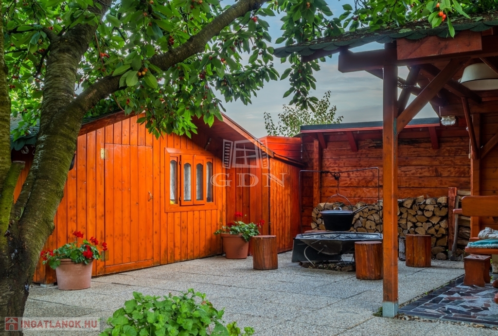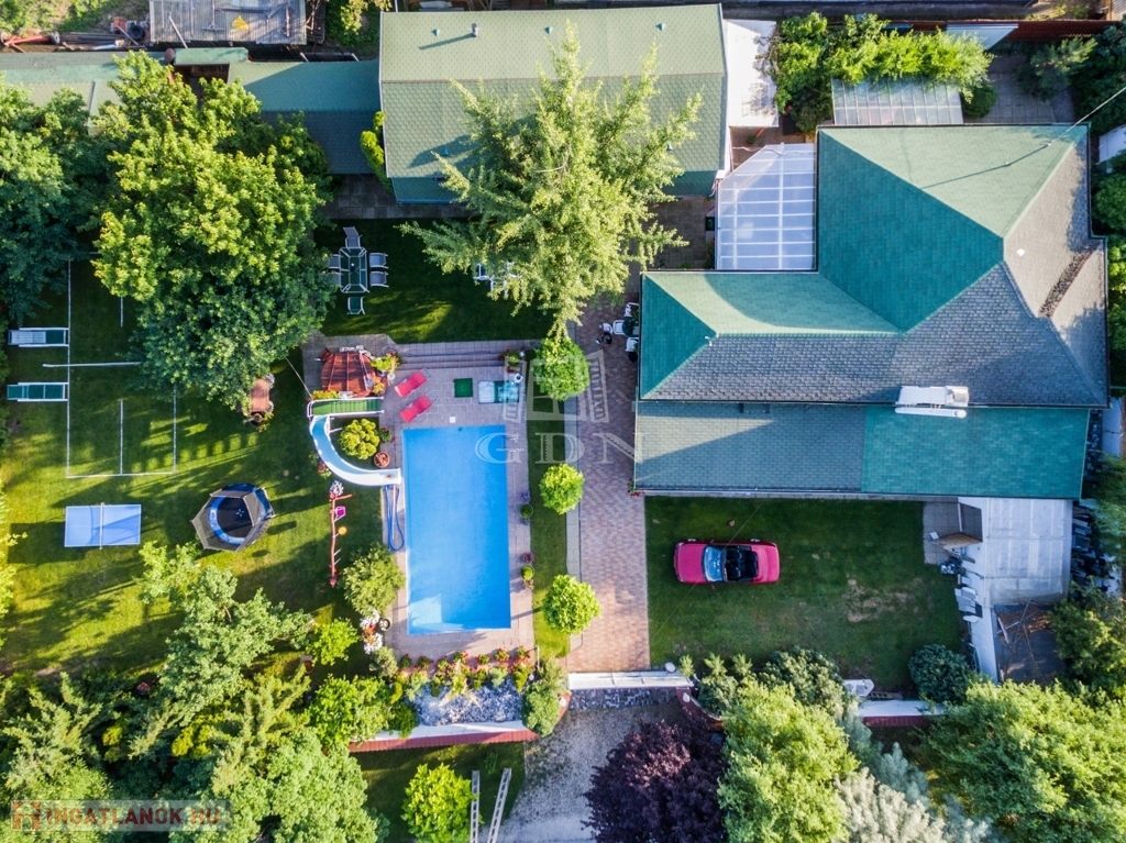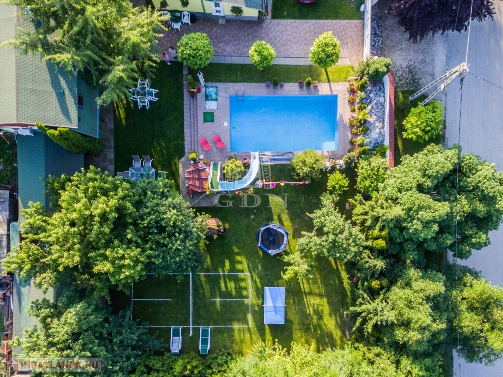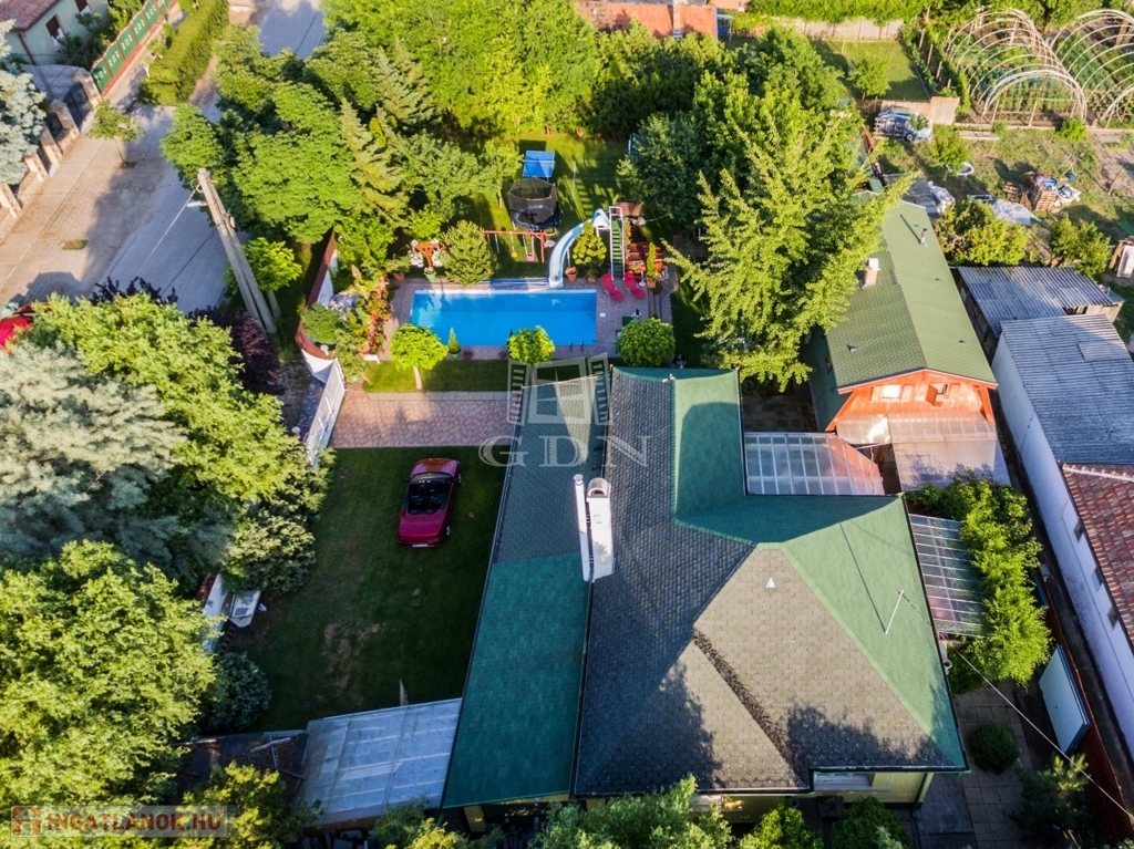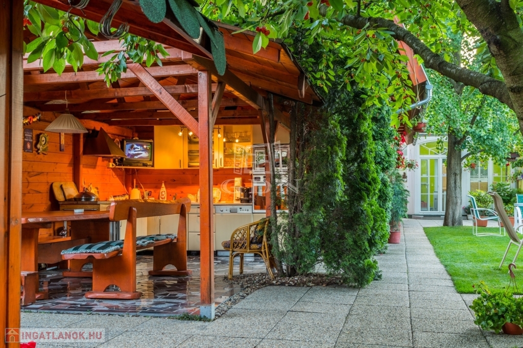 -három kerti kút Ez egy olyan otthon, ahol a család apraja-nagyja kényelmesen elfér, sőt még a nagyszülők, vendégek vagy akár bérlők számára is van külön lakrész. A kert hatalmas, gondozott, ginkgo fák, tuják teszik széppé és hűvössé. Rengeteg lehetőséget nyújt kikapcsolódásra.