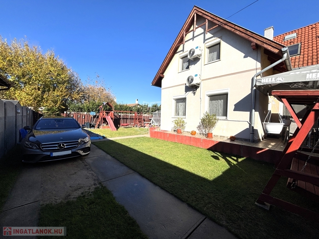 Üllőn, CSENDES környezetben ELADÓ egy NAPPALI + 4 SZOBÁS, DUPLAKOMFORTOS IKERHÁZ RENDEZETT, SZÉP UDVARRAL és GÉPESÍTETT MEDENCÉVEL.