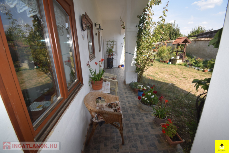 A parasztház jellegű, tégla építésű épület jelentős felújításon esett át, amely magába foglalta a víz, csatorna és a villany hálózat cseréjét és bővítését (3x16 A + éjszakai áram), a nyílászárók és beltéri ajtók cseréjét, valamint megújultak a fürdőszoba és a többi helyiség burkolatai. A lakóházban 2 nagyméretű szoba, egy étkező, egy konyha, egy fürdőszoba, egy közlekedő és egy fatároló található, melyből további szoba alakítható ki, valamint az épülethez kapcsolódik egy 17 m2-es garázs. Az épület szinte teljes hosszában hangulatos, hívogató tornác adja meg a ház karakterét.