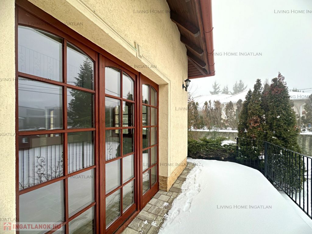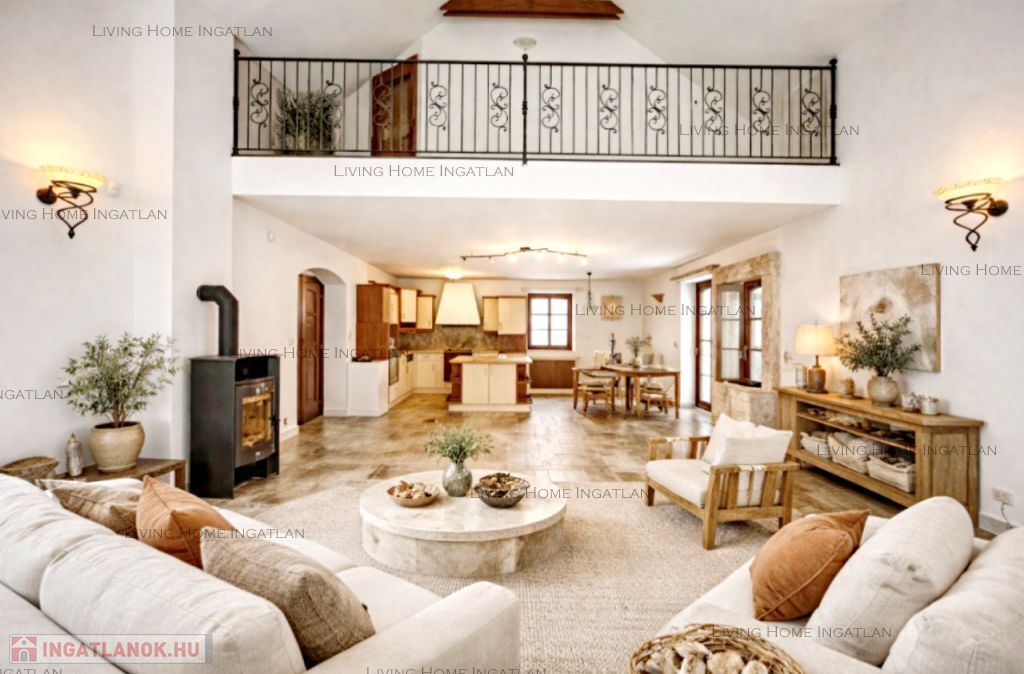 We offer for sale an elegant, Mediterranean-style family home with outstanding features in a quiet dead-end in Rókahegy, Üröm. The property is characterized by high-quality materials, well-designed spaces and timeless elegance. The house captivates with its distinctive appearance even from the outside: a light, warm-toned facade, terracotta-style roof, wrought iron railings, fences and cozy terraces evoke the world of southern European villas. One of the most striking features of the interior is the gallery above the living room, which further enhances the feeling of space and light. The 823 sqm garden has fruit trees and ornamental shrubs, all in the vicinity of a nature reserve.