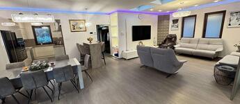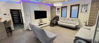 -A nappali nagy tolóajtóval rendelkezik, közvetlen kertkapcsolattal